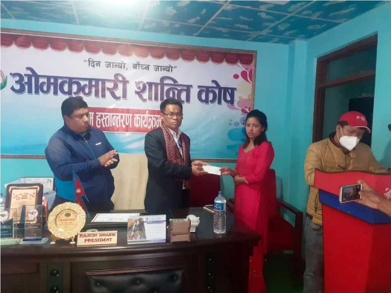 मृगौलामा समस्या भएका बेनी नगरपालिका २ खवरका धनबहादुर पाठकलाई ओमकुमारी शान्ति कोषको नेतृत्वमा संकलित १ लाख ४४ हजार ७८८ रुपैया रकम उपचारत पाठकलाई हस्तान्तरण गरिएको थियो । त्यस्तै कलेजो प्रत्यारोपन गर्ने धवलागिरी गाउँपालिका–७ धारापानीका खड्कबहादुर थापाको उपचारका लागि संकलन भएको २ लाख ८० हजार ७५० रुपैयाँ रकम विरामीको आफन्तलाई हस्तान्तरण गरिएको थियो ।सो रकम मध्य ८० हजार अष्टेलियामा रहेका विरामीका आफन्तहरुले संकलन गरेर पठाएका थिए ।