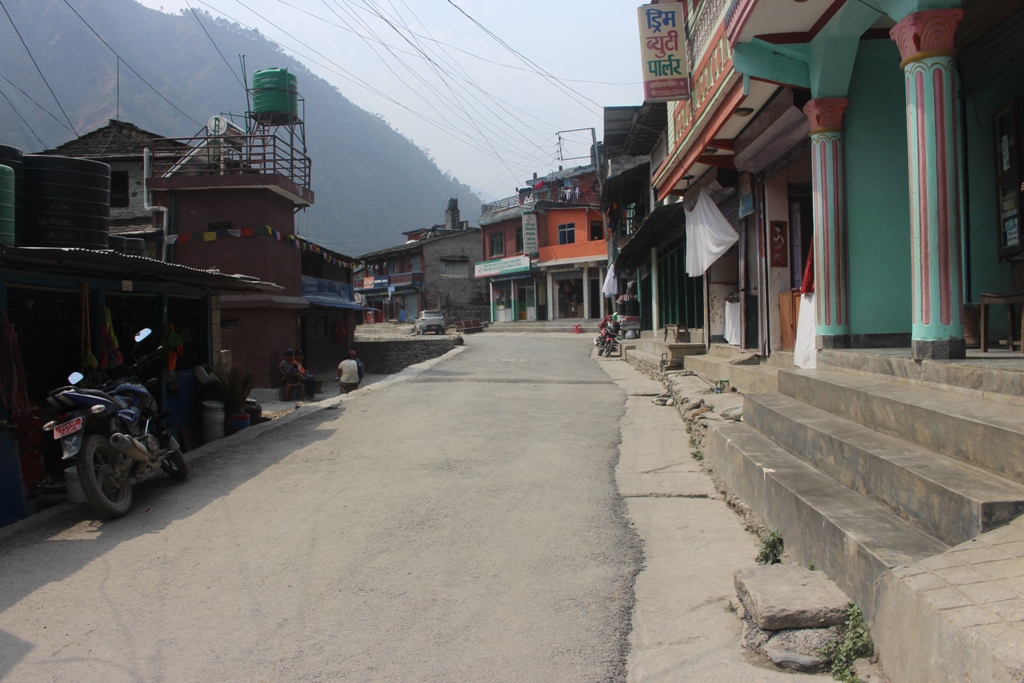 गत बर्ष नै सम्पन्न गर्ने लक्ष्य रहेपनि कोरोना महामारीको कारण प्रभावित भएको योजनालाई प्रदेश सरकारसंगको सहमतीमा म्याद थप गरि सम्पन्न गर्न लागिएको गाउँपालिकाका अध्यक्ष सतप्रसाद रोकाले बताए । बजार क्षेत्रको करिब ६ सय मिटर सडकलाई ३ दशमलब ७५ मिटर फराकिलोमा कालोपत्रे गरिएको छ।