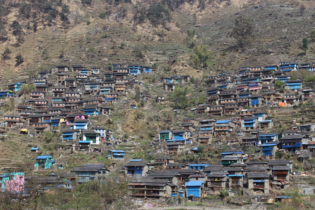 म्याग्दी, २९ चैत । रघुगंगा गाउँपालिका ७ चिमखोला २ सय ६० घरपरिवारको बसोबास छ । थाली नाच उद्यमथलोको रुपमा परिचित चिमखोला गाउँलाई पर्यटकीय गन्तव्यको रुपमा विकास गर्न स्थानीयले धौलागिरी आईसफल र रिखार थाने पर्यटकको लागि लक्षित गरेर कलासस्कृति संरक्षण तथा होमस्टे संचालन गरेका छन् । सडक सुविधासमेत पुगेको छ। तस्विर : धिरन खत्री ।