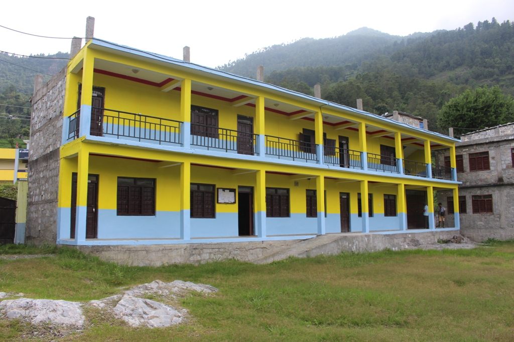 म्याग्दी, २१ साउन । राष्ट्रिय पुननिर्माण प्राधिकरण जिल्ला आयोजना कार्यान्वयन इकाई (शिक्षा) म्याग्दी मार्फत विद्यालयतर्फको भवन, शौचालय र खानेपानी लगायतको पूर्वाधार निर्माणले विद्यालयको संरचनाको स्वरुप फेरिदै गएको छ । विद्यार्थीको अध्ययनका लागि सुरक्षित विद्यालय निर्माणमा म्याग्दीमा तिव्रता पाएको छ ।