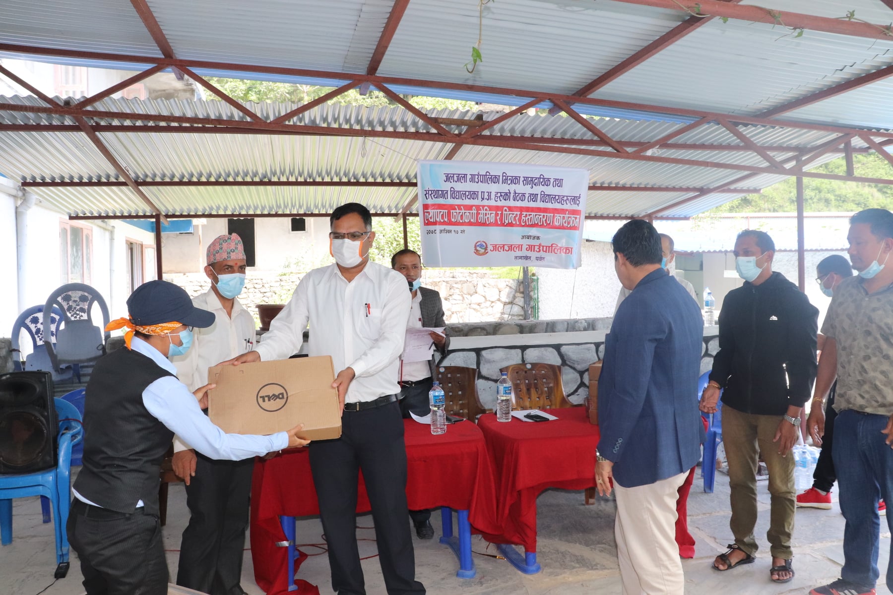 जलजला, १९ असोज । पर्वतको जलजला गाउँपालिकाले विद्यालयहरूलाई ल्यापटप र प्रिन्टर वितरण गरेको छ । विद्यालयलाई प्रविधिमैत्री बनाउन गाउँपालिकाभित्र रहेका ४४ वटा विद्यालयहरूलाई ल्यापटप, फोटोकपी, प्रिन्टर लगायतका सामग्रीहरू वितरण गरेको हो ।