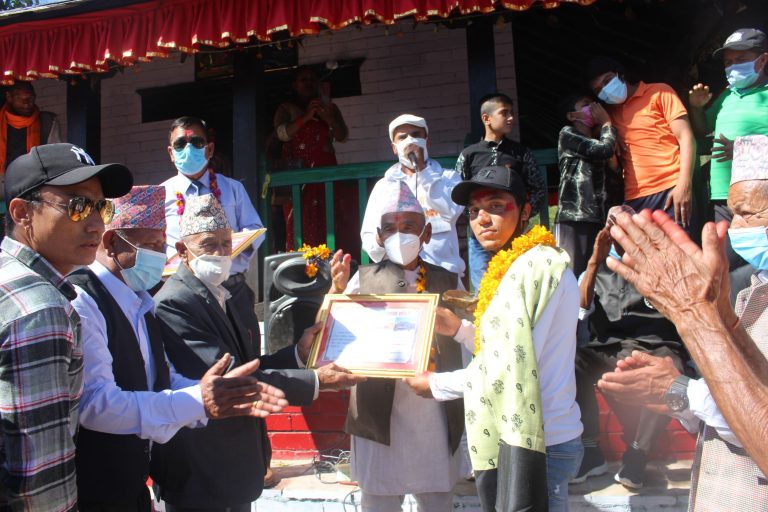 म्याग्दी, २८ असोज । म्याग्दीको रघुगंगा गाउँपालिका-२ भगवतीस्थित भगवती कोतमन्दिरमा नवमीको दिनमा सरकारी रागोको मार हान्ने आर्यन खड्कालाई पुजा समिति र राखुबासीले भब्य सम्मान गरेका छन् । तीन लाख रुपैयाँ बोलकवोलमा सरकारी राँगो भगवती बयरी डिलका युवा आर्यन खड्काले सफल पुर्वक मार हानेका हुन् ।