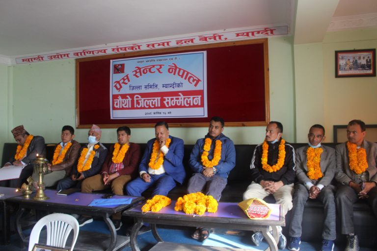 म्याग्दी १६ कात्तिक । प्रेस सेन्टर म्याग्दीको मंगलबार बेनीमा सम्पन्न चौथो जिल्ला सम्मेलनबाट कमल खत्रीको अध्यक्षतामा १७ सदस्यीय जिल्ला कमिटि चयन भएको छ ।