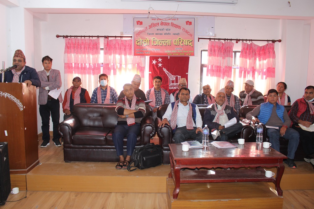 म्याग्दी, २५ कात्तिक । एकिकृत अखिल नेपाल शिक्षक संगठन म्याग्दीको दोस्रो जिल्ला परिषद्ले होमनाथ पाण्डेको अध्यक्षतामा ३१ सदस्यीय संगठनको जिल्ला समन्वय परिषद् गठन गरेको छ । पाण्डे यसअघिको कमिटिमा पनि जिल्ला अध्यक्ष हुनुहुन्थ्यो ।