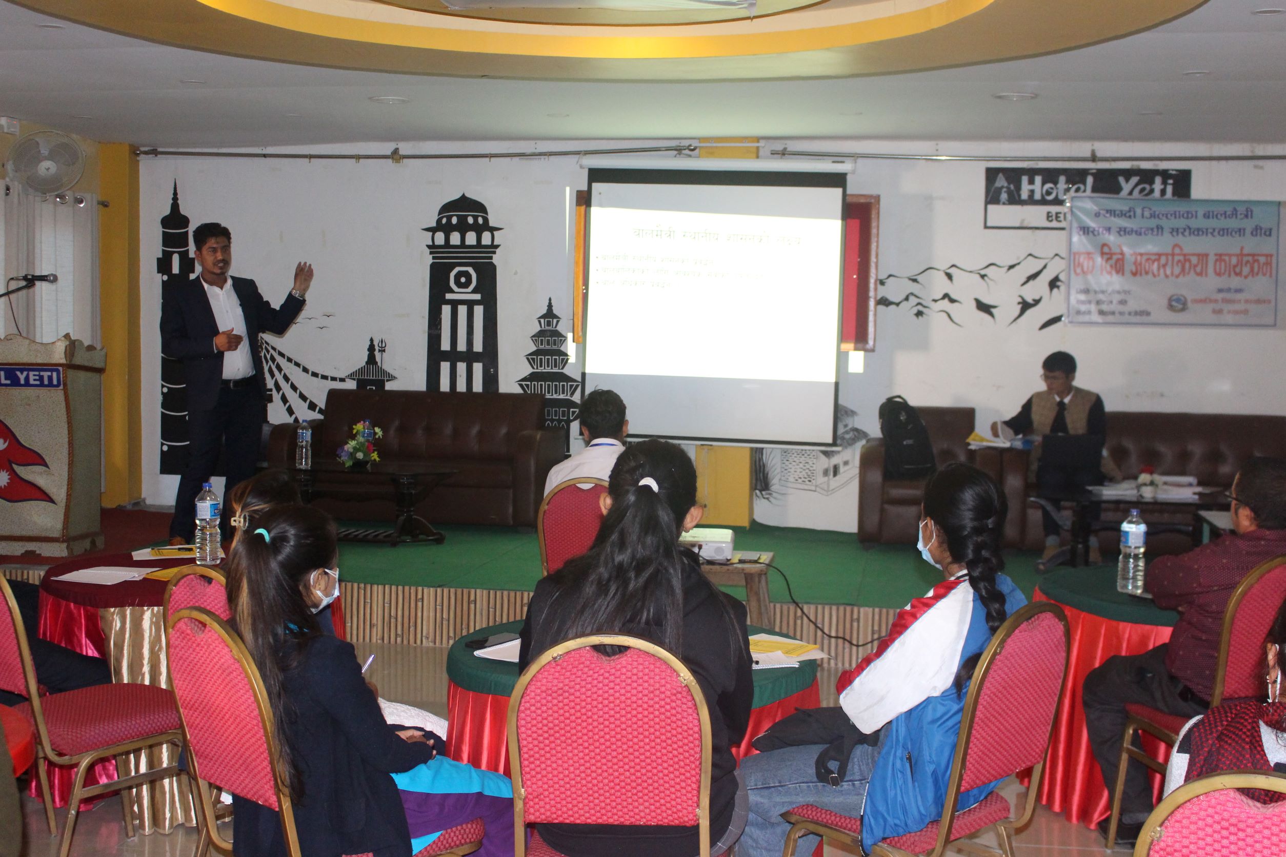 बालमैत्री स्थानीय शासन कार्यान्वयन निर्देशिका सम्वन्धी स्थानीय तहको भूमिका र कसरी कार्यान्वयन गर्ने सम्वन्धी बेनी नगरपालिकाका अधिकृत युवराज थापाले सहजीकरण गरेका थिए ।