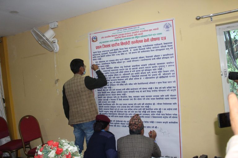 समाजमा २० बर्ष मुनीको किशोरी विवाह रोक्ने, यौनशोषण, हिंसा वलात्कार जस्ता अन्य घटनाहरुको अन्त्य गराउने पक्षमा किशोरीहरु र सरोकारवालाहरु एक हुने प्रतिवद्धता जनाएका छन् । विद्यालयमा महिनावारी हुदाँ प्रयोग हुने प्याड अनिवार्य उपलब्ध गराउन स्थानीय सरकार र विद्यालयलाई माग गर्ने प्रतिवद्धताहरु उपस्थित छात्राहरुले घोषण पत्रमा उल्लेख गराएका छन् । समाजमा गलत प्रथाको रुपमा रहेको बालविवाह न्यूनिकरण, किशोरीहरुको क्षमता अभिवृद्धि र नेतृत्व विकाससम्वन्धी प्रशिक्षण गरिएको संगम म्याग्दीका अध्यक्ष दिपक पौडेलले जानकारी दिए ।