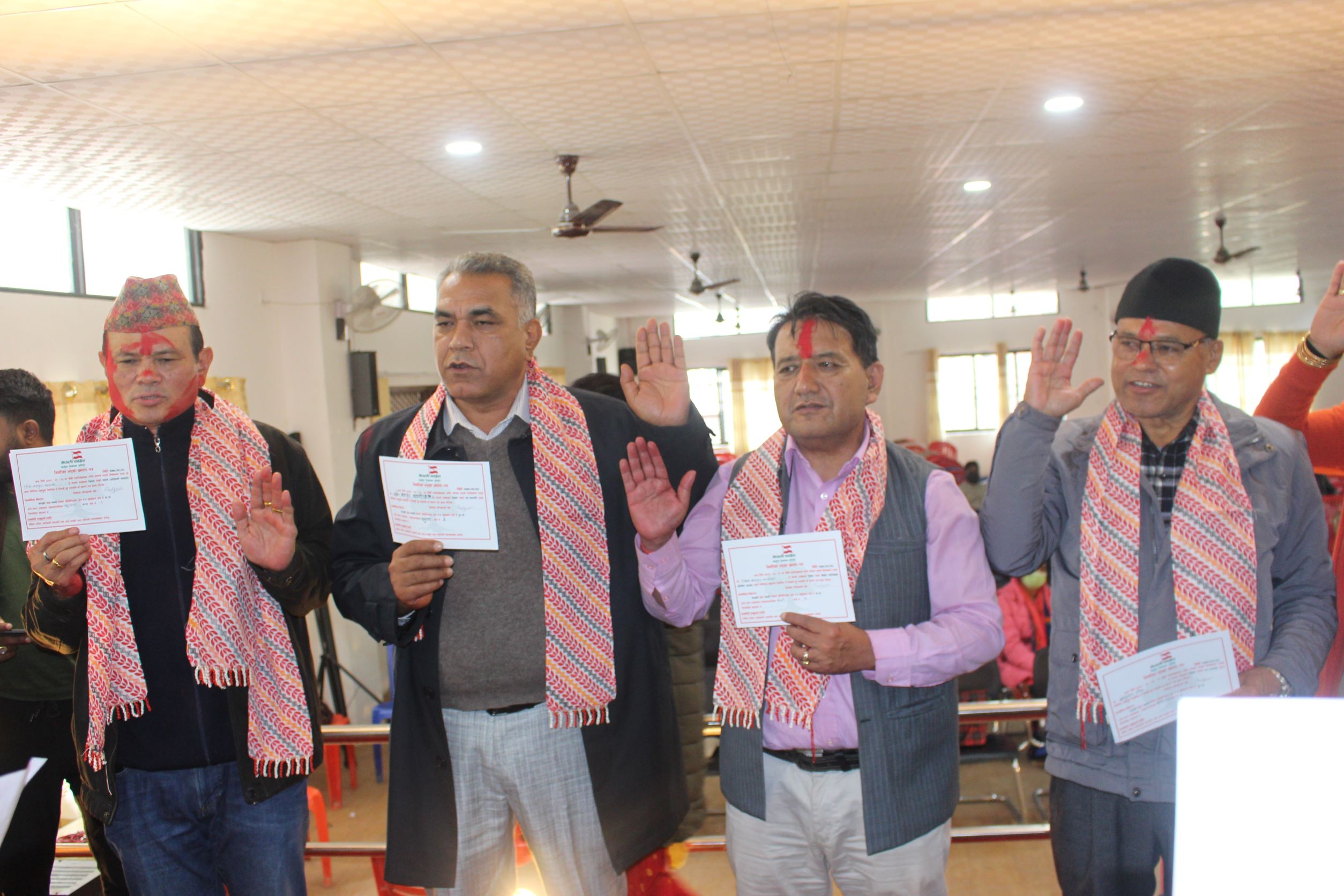 म्याग्दी, ४ मंसिर । नेपाली काग्रेस म्याग्दीको सातौ जिल्ला अधिबेशनबाट दोस्रो कार्यकालका लागि सभापतिमा निर्बाचित खमबहादुर गर्बुजा (खम्बिर)ले नेतृत्वमा रहेको नयाँ कार्यसमितिले पद तथा गोपनियताको सपथ ग्रहण भएको छ। जिल्ला समन्वय समितिको सभाहलमा निर्वाचित जिल्ला कार्यसमिति र महाधिवेशन प्रतिनिधिलाई निर्वाचन अधिकृत निरञ्जनलाल राजभण्डारीले सपथ ग्रहण गराएका हुन् ।