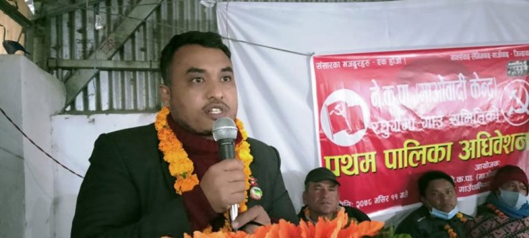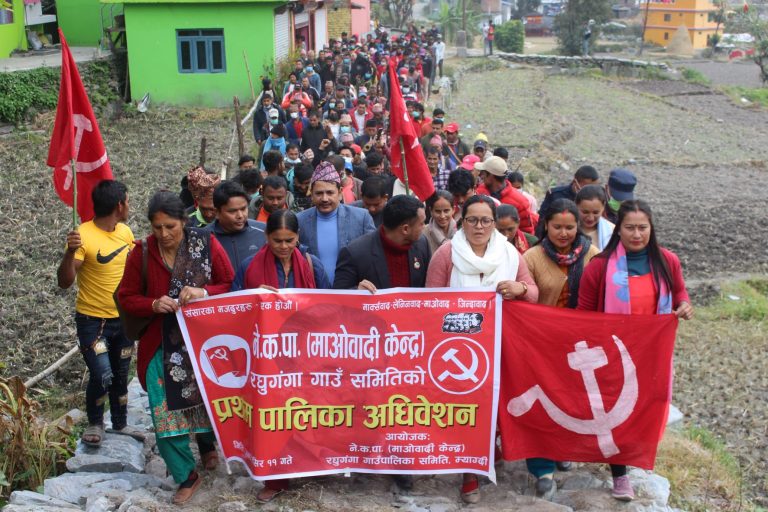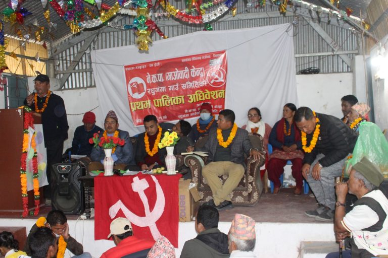 म्याग्दी ११ मंसिर । नेकपा (माओवादी केन्द्र) रघुगंगा गाउँपालिका कमिटीको अध्यक्षमा हरि भण्डारी सर्वसम्मत निर्वाचित हुनुभएको छ । शनिवार गाउँपालिकाको केन्द्र मौवाफाँटमा सम्पन्न प्रथम गाउँपालिका समितिको अधिवेशनबाट भण्डारीको अध्यक्षतामा सर्वसम्मत रुपमा ५५ सदस्यीय कमिटी निर्वाचित भएका हुन् ।