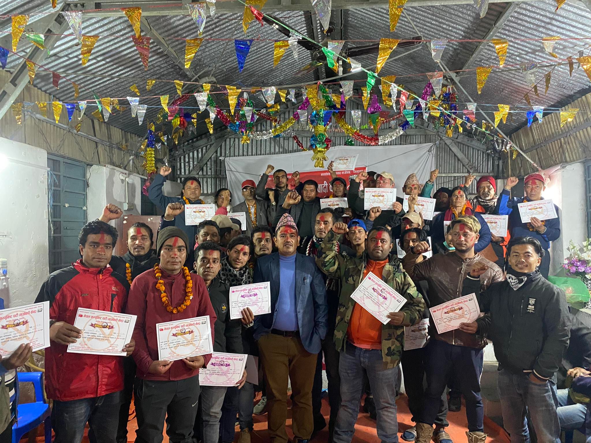 कमिटीको उपाध्यक्षमा टेककुमारी खत्री, इन्द्रबहादुर मगर, सुनिल सुनार, सचिबमा भविन्द्र शेरपुञ्जा, सह-सचिबमा कणर् राना निर्वाचित हुनुभएको निर्वाचन अधिकृत श्रीकृष्ण रिजालले जानकारी दिनुभयो । निर्वाचन अधिकृत रिजाल, ज्येष्ठ कम्युनिष्ट नेता शालिकराम रिजाल, नेकपा माओवादीका रघुगंगा इन्चार्ज रिम कटुवाल लगायतले नवनिर्वाचित पदाधिकारी र सदस्यहरुलाई अविर, माला लगाएर प्रमाणपत्र प्रदान गर्नुभएको थियो ।