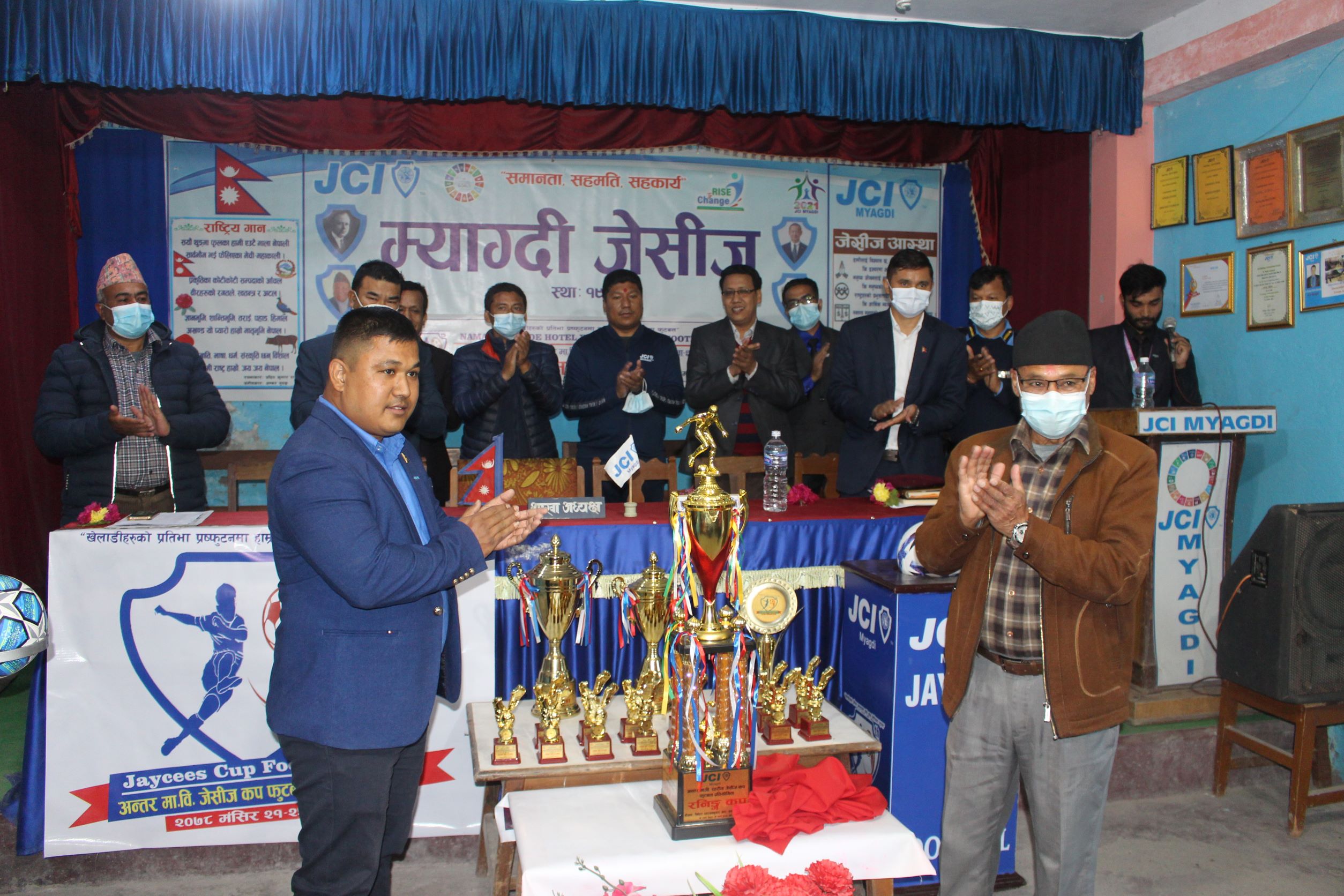 म्याग्दी २१ मंसिर । म्याग्दी जेसीद्वारा आयोजित अन्तरमावि नमस्ते ट्रेड होटल याक जेसीज कप फुटबल प्रतियोगिता जेसिजको सभाहलमा मंगलबार उद्घाटन गरिएको छ । मंसिर २५ गतेसम्म संचालन हुने अन्तर मावि फुटबल प्रतियोगिताको उद्घाटन बेनी नगरपालिका मेयर हरिकुमार श्रेष्ठले जेसिज कप मुख्य रेफ्रीलाई फुटबल हस्तान्तर र रनिङ्ग कप सार्वजनिक गर्नुभएको हो ।