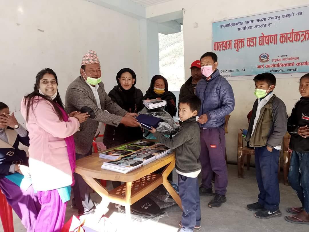 गाउँपालिकाले बालश्रम सामाजिक अपराध भएको र बालबालिकाहरुलाई कडा परिश्रम गर्नुपर्ने र कानुनले बन्देज लगाएको काममा लगाउन नहुने सन्देश सहितको चेतनामुलक ब्रोसर र बोर्डहरु मार्फत समेत सचेतना जगाउने काम गर्दै आएको सुवेदीले बताए ।