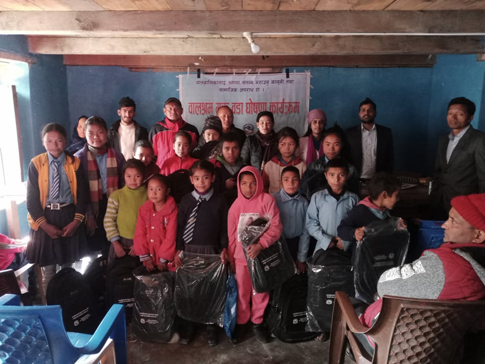 कर्यक्रममा श्रमको जोखिमबाट मुक्त गराएर शैक्षिक क्षेत्रमा क्रियाशिल गराउन परिवारको आर्थिक अवस्था कमजोर भएका २० जना बालबालिकाहरुलाई झोला, पोशाक र स्टेशनरी लगायतका शैक्षिक सामाग्री वितरण गरिएको थियोे । कार्यक्रममा गाउँपालिकाका उपाध्यक्ष कमला तिलिजाले बालश्रम न्यूनीकरणका लागि भएका ऐन कानुनको प्रभावकारी कार्यान्वयन गर्न सबैलाई आग्रह गरीन् । बालबालिकाहरुलाई श्रममा लगाउन नपाईने बताउँदै पढाईमा उपयुक्त वातावरण मिलाउन हरेक घरपरिवार सचेत रहनुपर्नेमा जोड दिईन । बालश्रममुक्त वडा घोषणामात्र सिमित नराख्न चिमखोलाबासीलाई उपाध्यक्षले आग्रह गरिन ।