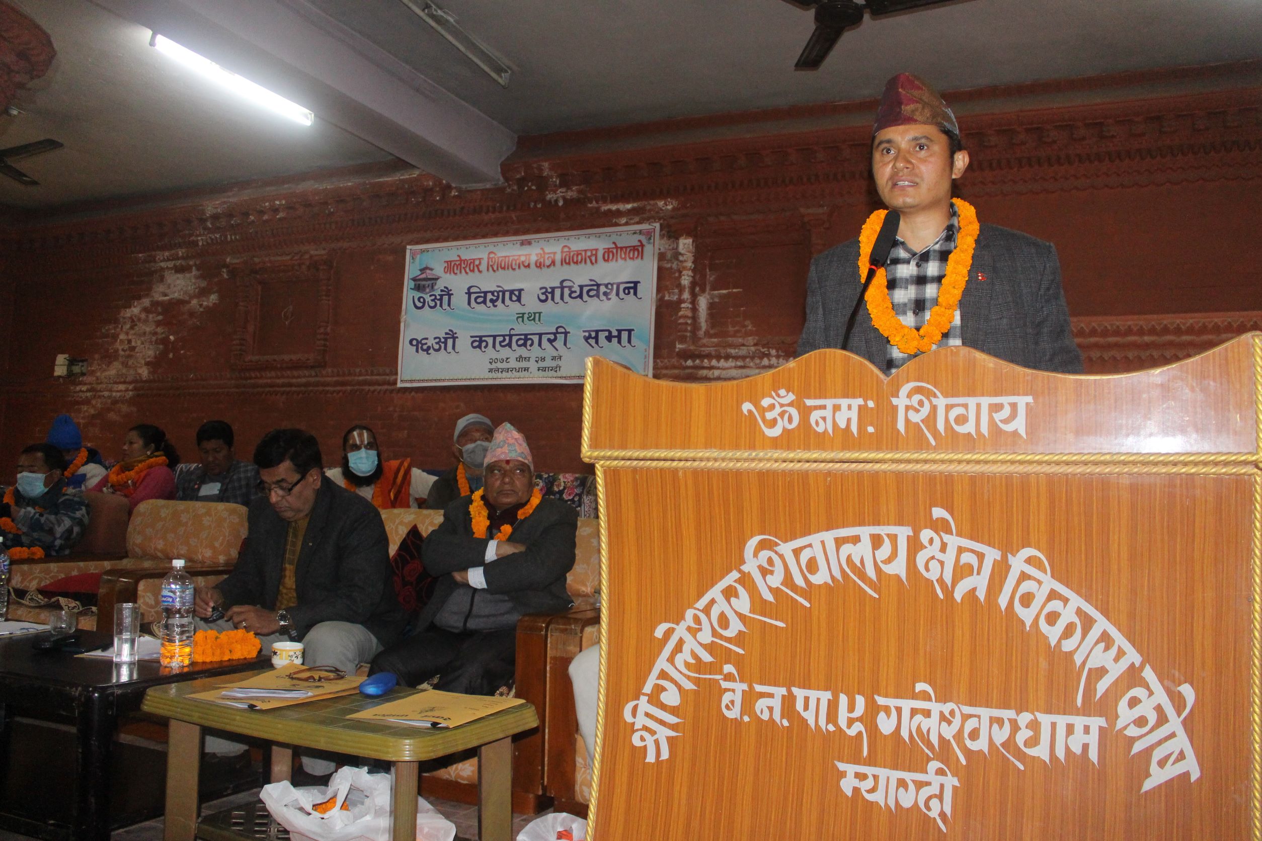 म्याग्दी, २४ पुस । गलेश्वर शिवालय क्षेत्र विकास कोषमा रहेको रकम एकीकृत गरेर भरपर्दो र प्रभावकारी हुने संस्थामा राख्न कोषका प्रमुख संरक्षक रहेका प्रमुख जिल्ला अधिकारी चिरञ्जीवी रानाले निर्देशन दिनुभएको छ । कोषको ७ औं विशेष अधिवेशन एवम् १६ औं कार्यकारी सभामा कोषका प्रमुख संरक्षक समेत रहनुभएका प्रजिअ रानाले कोषमा रहेको मौज्दात रकम विभिन्न सहकारी छरेर राख्न भन्दा एकीकृत गरेर भरपर्दो बैंकमा राख्न संचालक समितिलाई सुझाव दिनुभयो ।