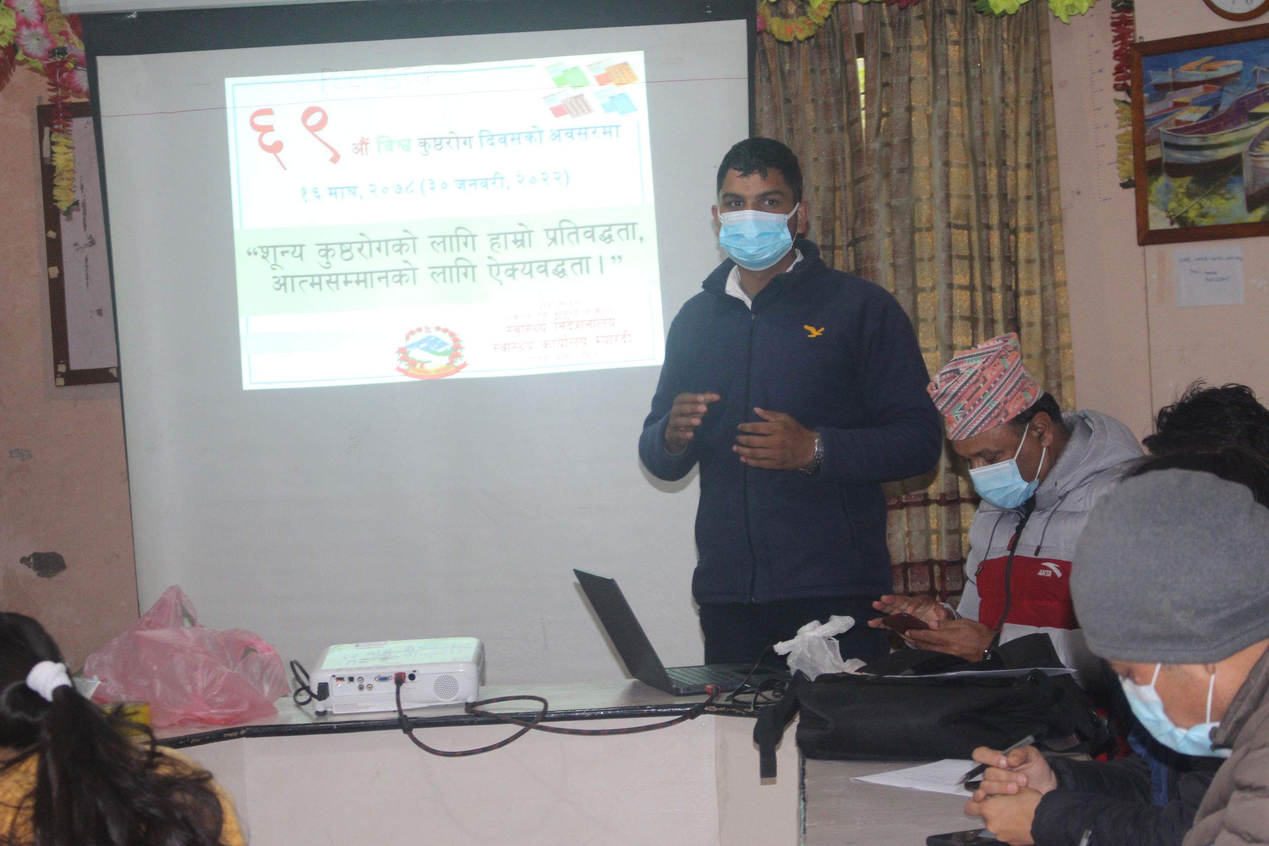 ‘कुष्ठरोगका लागि हाम्रो प्रतिबद्धता आत्मसम्मानको लागि ऐक्यबद्धता’ भन्ने सन्देशसहित ६९ औँ विश्व कुष्ठरोग दिवसमा बेनीमा अन्तरक्रिया गरिएको छ। स्वास्थ्य कार्यालय म्याग्दीको आयोजनामा कुष्ठरोग के हो, यो रोग लागेको कसरी थाहा पाउने, यो रोग लाग्न नदिन के गर्ने, बिरामीले कसरी सावधानी अपनाउने र नियन्त्रण लगायतका विषयमा पत्रकारसंग अन्तरक्रिया गरिएको थियो ।