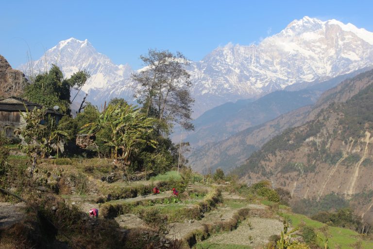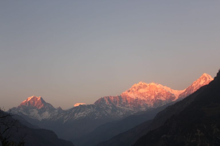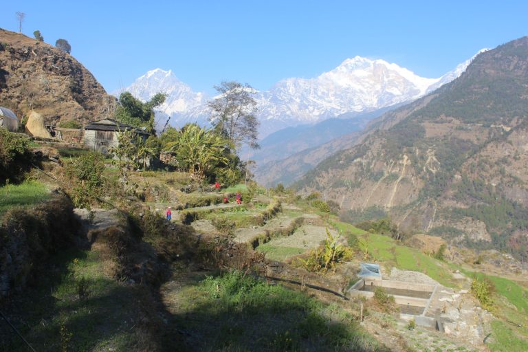 म्याग्दी, १३ फागुन । म्याग्दीको रघुगंगा गाउँपालिका– २ राखु घट्टबाट देखिएको हिमालको दृष्यहरु । मुख्यमन्त्री वातावरण मैत्री नमुना कृषि गाउँ लागु भएको घट्टमा कृषकले सुन्तला, कागती लगायतको ब्यवसायिक खेती सुरुवात गरेका छन् । नजिकबाट अन्नपुर्ण र नीलगिरी हिमालको दृष्यहरु देख्न सकिने घट्टलाई कृषि पर्यटनको रुपमा विकास गर्ने आगामी योजना यहाँका कृषकहरुको रहेको छ । तस्विर : धिरन खत्री/ राखु भगवती, म्याग्दी ।