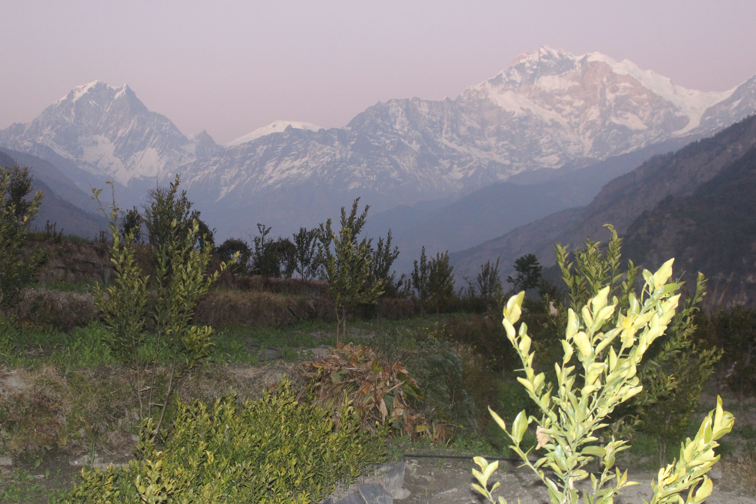 म्याग्दी, १३ फागुन । म्याग्दीको रघुगंगा गाउँपालिका– २ राखु घट्टबाट देखिएको हिमालको दृष्यहरु । मुख्यमन्त्री वातावरण मैत्री नमुना कृषि गाउँ लागु भएको घट्टमा कृषकले सुन्तला, कागती लगायतको ब्यवसायिक खेती सुरुवात गरेका छन् । नजिकबाट अन्नपुर्ण र नीलगिरी हिमालको दृष्यहरु देख्न सकिने घट्टलाई कृषि पर्यटनको रुपमा विकास गर्ने आगामी योजना यहाँका कृषकहरुको रहेको छ । तस्विर : धिरन खत्री/ राखु भगवती, म्याग्दी ।