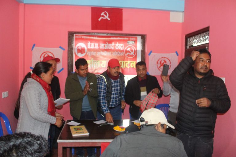 म्याग्दी, १४ फागुन । नेकपा माओवादी केन्द्र रघुगंगा गाउँपालिका कमिटीले मौवाफाँटमा पाटी कार्यालय स्थापना गरेको छ। आगामी स्थानीय तहलाई लक्षित गरे शनिबार मौवाफाँटमा स्थापना भएको पाटी कार्यालयको उद्घाटन गण्डकी प्रदेश सभा सदस्य विनोद केसीले गर्नुभएको हो ।