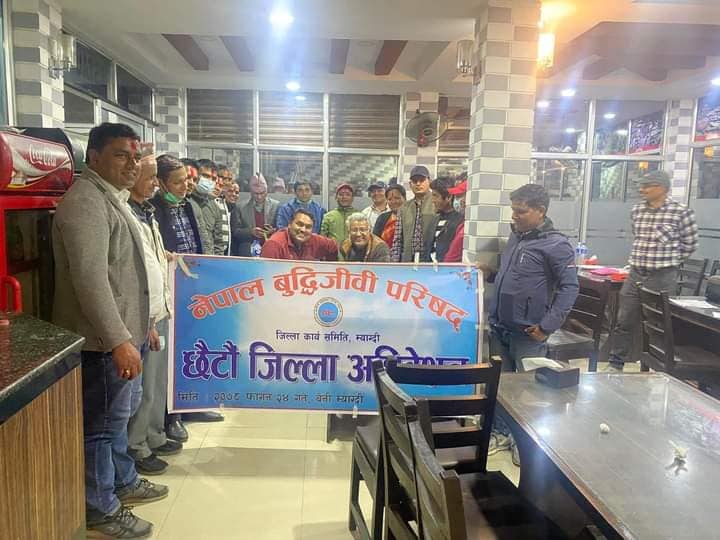 म्याग्दी, २५ फागुन । नेपाल बुद्धिजीवी परिषद जिल्ला कार्यसमिति म्याग्दीको छैटौं जिल्ला अधिवेशनले गोरखनाथ सुवेदीको अध्यक्षतामा कार्यसमिति चयन गरेको छ । परिषदको उपाध्यक्षमा श्रीधर सुवेदी, सचिवमा नारायण पौडेल, कोषाध्यक्षमा विष्णुकुमारी रोका, सहसचिवमा हिराबहादुर बरुवाल र कृष्णकला सुवेदी चयन हुनुभएको छ ।