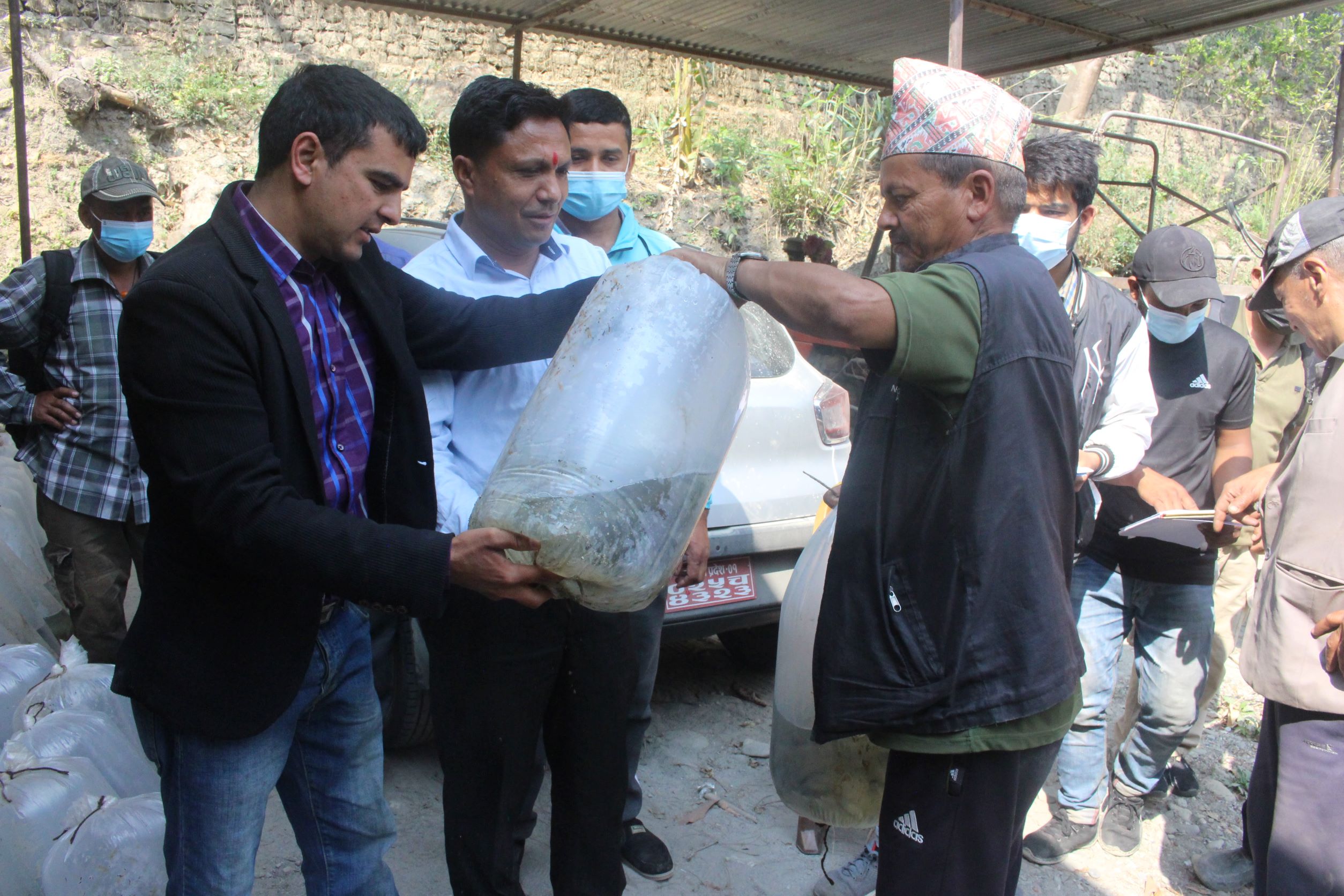 नगरपालिका प्रवक्ता रामकृष्ण बराईलीले शाखा प्रमुख प्रदिप गौतमले नगरपालिमा उपस्थित कृषकलाई कमन, सिल्भर, नैनी, ग्रासकट लगायत जातका माछाका भुरा उपलब्ध गराएका थिए ।