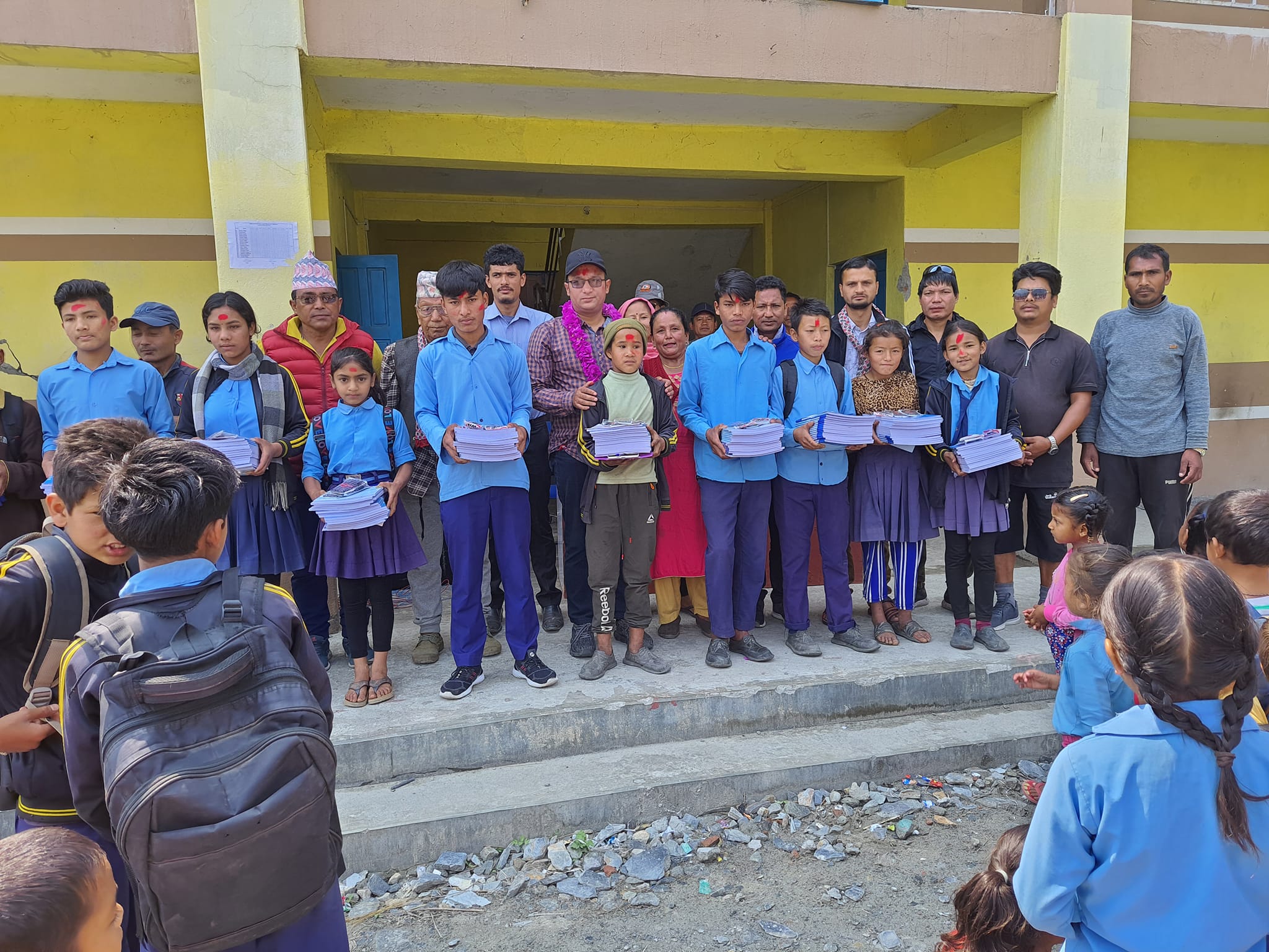 थप ६ वटा विद्यालयका ३५ जना विद्यार्थीहरुलाई प्रतिव्यक्ति रु. दुई हजार एक सय मूल्य बराबरको १६० पेजको १५ वटा कापी र १५ वटा कलमका दरले वितरण गरिने थापाले बताउनुभयो । मराङमा १०, मुना, लमसुङ, लुलाङ, मुदी र गुर्जामा ५÷५ जनालाई शैक्षिक सामग्री वितरण गरिने उहाँले बताउनुभयो ।