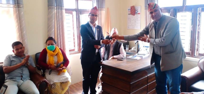 गाउँपालिकाको केन्द्र मौवाफाँटमा मुख्य निर्वाचन अधिकृतको कार्यालय उद्घाटनको अवसरमा अध्यक्ष भण्डारी र वडाअध्यक्ष कटुवालले प्रयोग गर्दै आउनुभएको सवारीसाधन प्रमुख प्रशासकिय अधिकृत अमृत सुवेदीलाई बुझाउनुभएको थियो ।