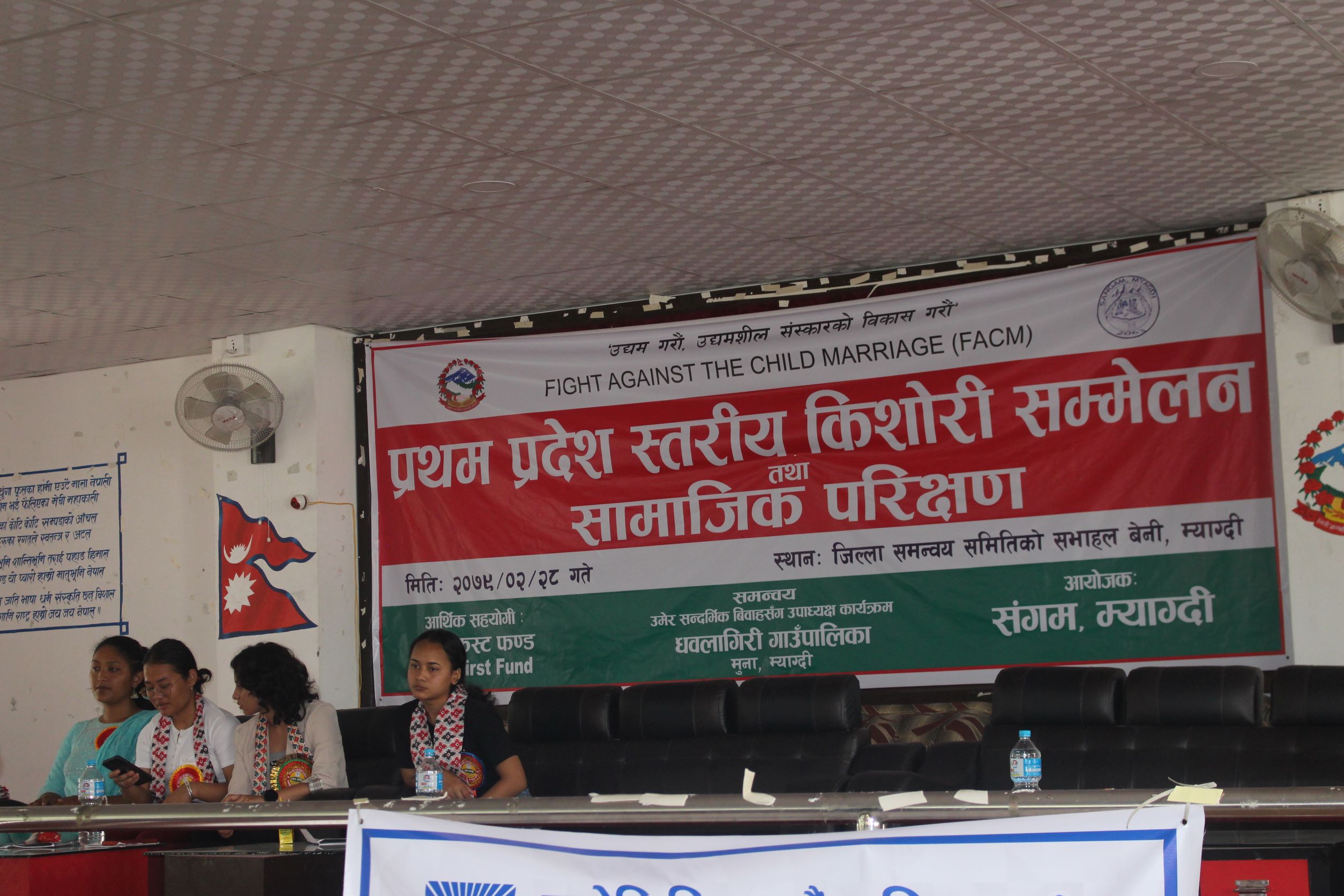 जिल्लास्तरीय किशोरी संजाल अध्यक्ष नरदेवी विकको अध्यक्षता भएको कार्यक्रममा प्रदेश बालपरिषद गण्डकी प्रदेशको पुर्व अध्यक्ष दिपा आचार्यको प्रमुख आतिथ्यतामा र संगम म्याग्दीकी सहससचिव सुनिता बेल्वासेको संचालनमा कार्यक्रम सम्पन्न भएको थियो ।