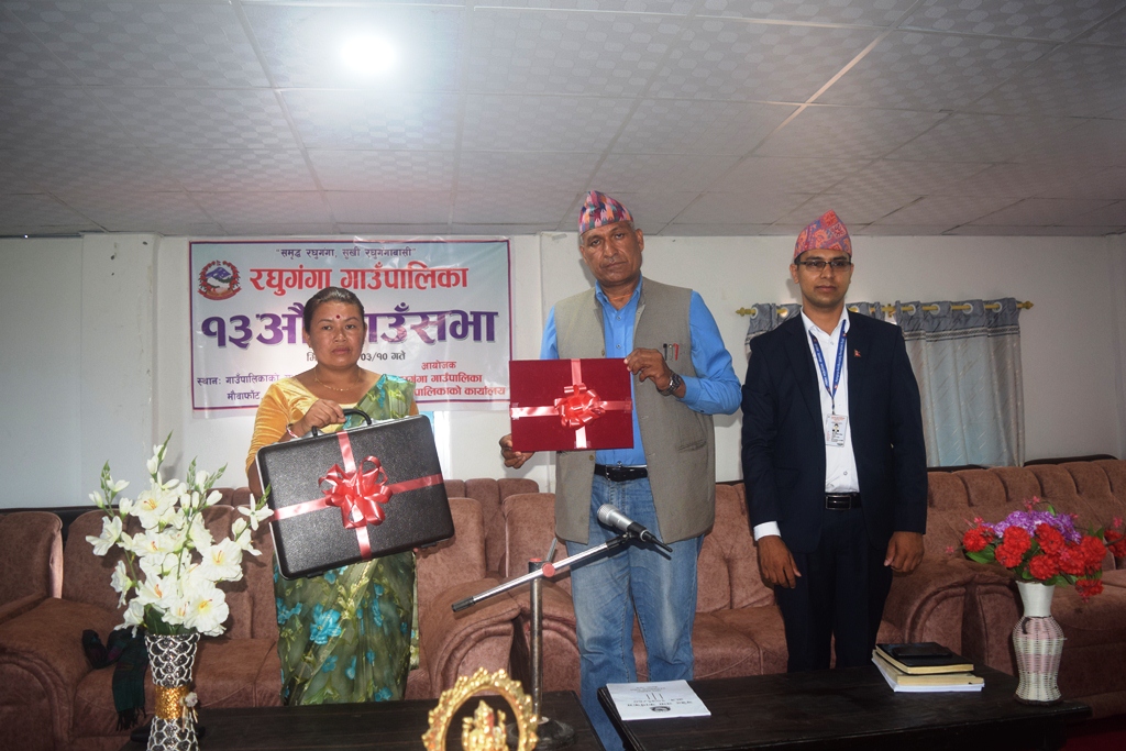 बेनी, ११ असार । म्याग्दीको रघुगंगा गाउँपालिकाले आगामी आर्थिक वर्ष २०७९÷८० का लागि रु ४६ करोड ८६ लाख २५ हजार बराबरको बजेट पारित गरेको छ । शुक्रवार सम्पन्न १३ औँ गाउँ सभामा गाउँपालिका अध्यक्ष भवबहादुर भण्डारीद्धारा प्रस्तुत नीति तथा कार्यक्रम र उपाध्यक्ष प्रेमकुमारी पुनले प्रस्तुत गर्नुभएको आगामी आर्थिक बर्षको बजेट छलफल सहित पारित गरिएको हो ।