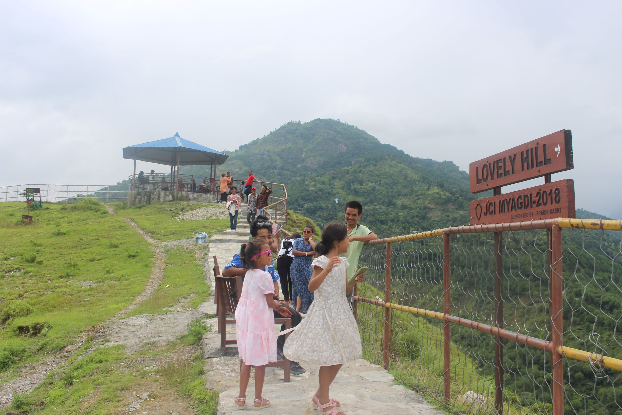 म्याग्दी, १४ साउन । पर्यटकीयस्थल ‘लभ्ली हिल’मा आन्तरिक पर्यटकहरुको चहलपहल बढेको छ । पर्यटक केन्द्रित पर्यटन पुर्वाधार निर्माणले ‘लभ्ली हिल’ मा आन्तरिक पर्यटकको चहलपहल बढेको हो ।