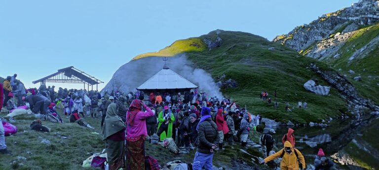 म्याग्दी, २७ साउन । म्याग्दीको अन्नपूर्ण गाउँपालिका – ५ मा अवस्थीत प्रसिद्ध धार्मिक स्थल खयर भारानीमा जनैपूर्णिमाको अवसरमा शुक्रवार पुजा आजा र भाकल पूरा गर्नका लागि भक्तजनको घुइँचो लागेको छ। खयरलेक मा रहेको ताल र ताल परिसरको खयर भारानी माताको थानमा पुजा गरेमा मनोकांक्षा पुरा हुने जनविश्वास रहेको छ । दुई देखि तीन यात्रा गरेर खयरलेकमा करिव ७ सय भक्तजनले दर्शन तथा पूजा गरेका छन्। समुद्री सतहदेखि चार हजार ६ सय मिटर उचाईमा रहेको खयरभारानी रहेको छ ।