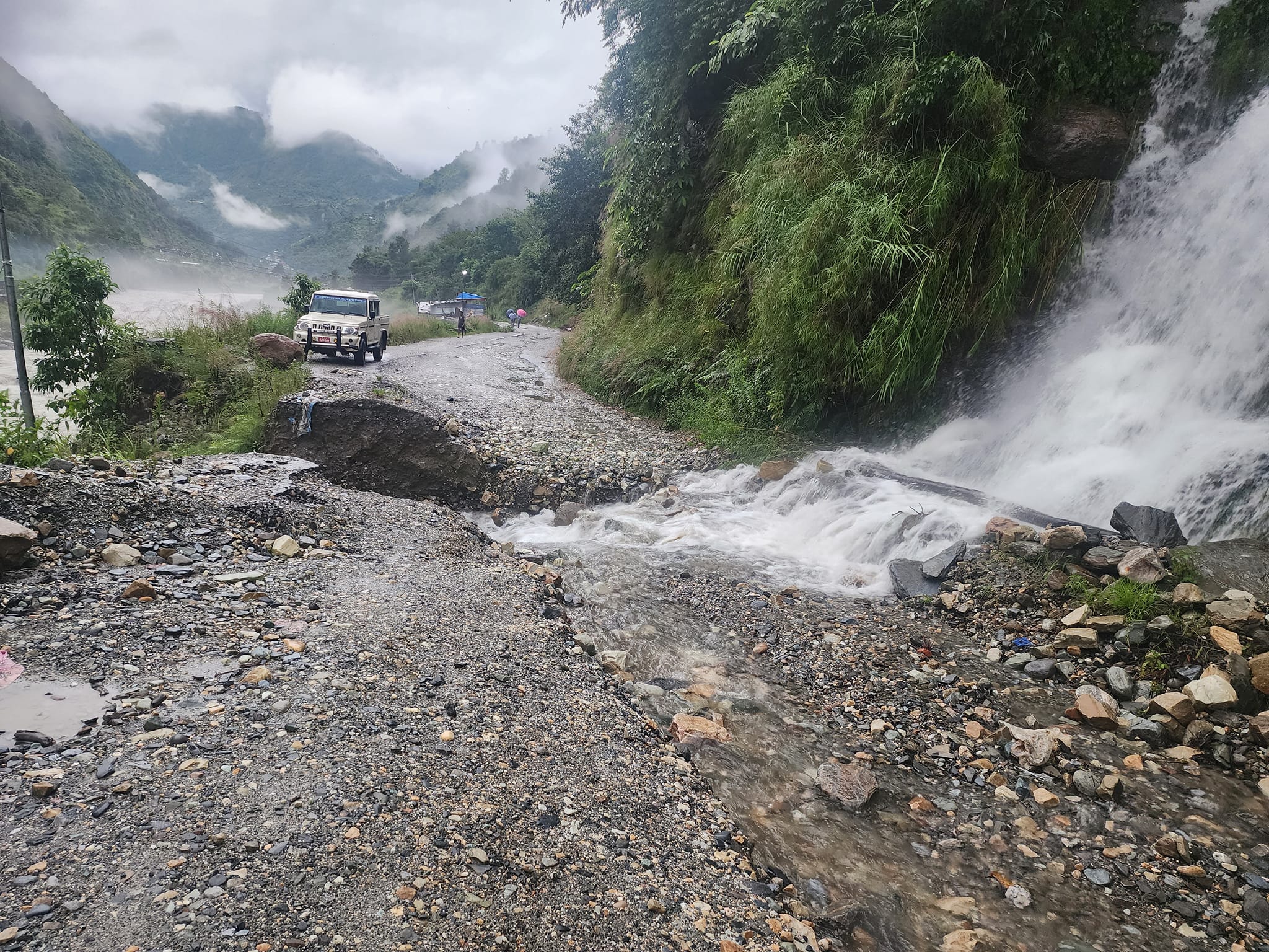 बेनी–जोमसोम–कोरला सडक आयोजनाले सडक विभाग र निर्माण कम्पनीका उपकरण परिचालन गरेर सडक मर्मत गरेर खुलाउने प्रयास जारी रहेको जनाएको छ । आयोजनाका सुपरभाइजर इन्द्रसिंह शेरचनले काभ्रेभिर, बैसरी र नैनीबगरमा निरन्तर पहिरो खसेकाले मर्मतमा समस्या भएको बताए । बैसरीमा बुधबार साँझ पहिरो पन्छाएर खोलिएको सडक पुनः अवरुद्ध भएको छ । बर्षातले म्याग्दीको बेनी–दरवाङसंगै ग्रामिण सडकहरु अवरुद्ध बनाएको छ । तस्विर : मोहन केसी