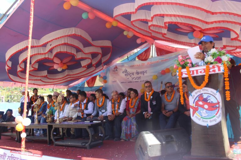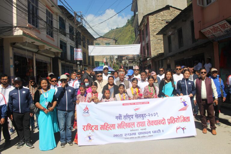 महिला भलिबल र तेक्वान्दोको जिल्ला खेलकुद विकास समितिका प्रमुख राजकुमार थापाले उद्घाटन गरेका थिए । खेलाडीको स्वागतमा बेनी बजारमा बाजागाजा, झाँकी सहितको ¥याली निकालिएको थियो ।