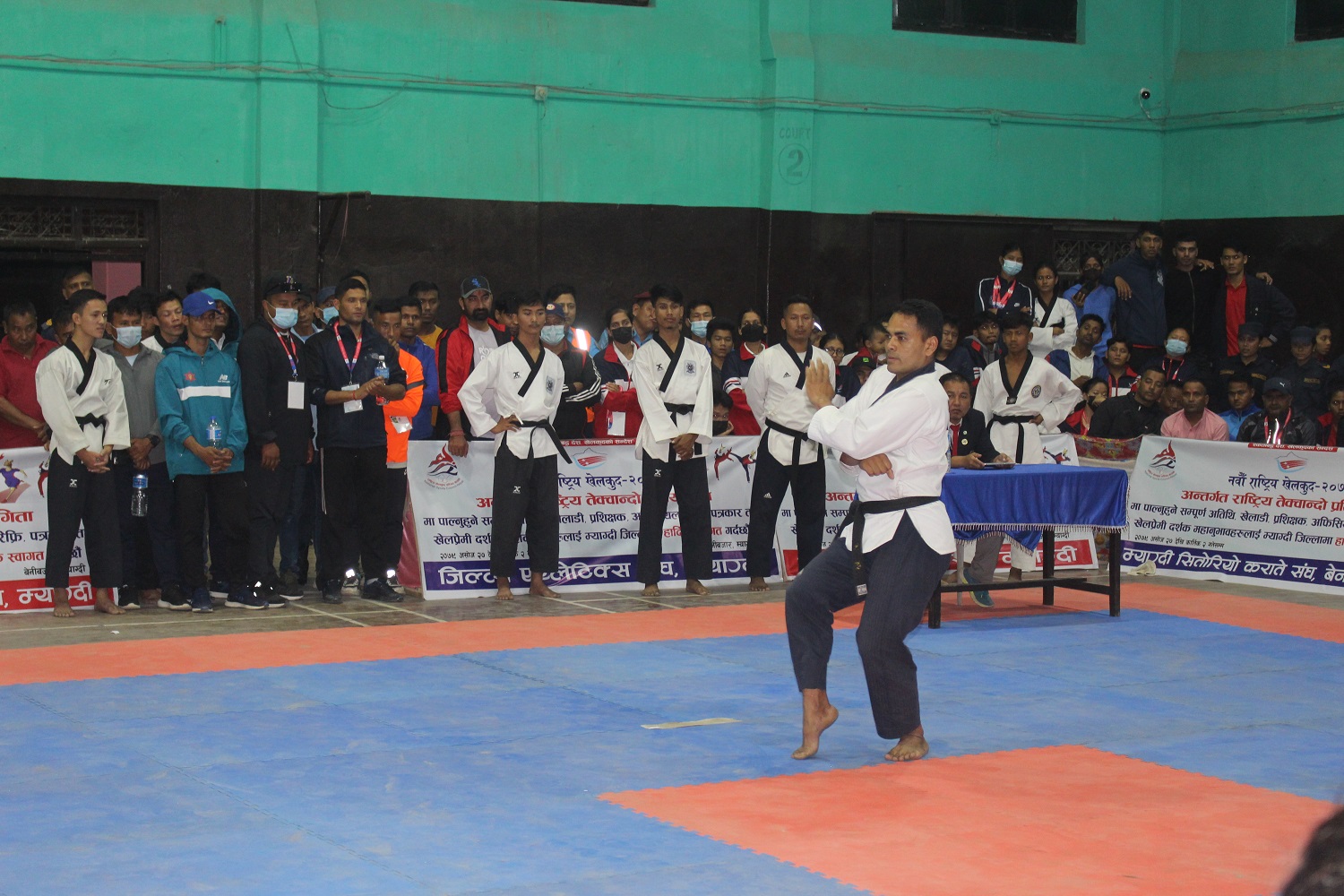 बेनीको कालीपुल स्थित कवर्डहलमा शुक्रबार साँझ पुम्से एकलको महिला र पुरुषको खेल खेलाइएको थियो । उद्घाटन खेलको महिला, पुरुष सिंगल पुम्सेको उपाधी नेपाल पुलिस क्लवले जितेको राष्ट्रिय खेलकुद परिषद्का प्रमुख तेक्वान्दो प्रशिक्षक नविन श्रेष्ठले बताउनुभयो ।