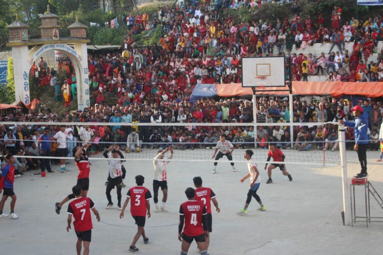 म्याग्दी, २९ असोज । म्याग्दीको रघुगंगा गाउँपालिका– २ राखु भगवतीमा भगवती युवा क्लवले आयोजना गरेको बडादशैँ मेलामा पुरुष भलिवलको उपाधी नवलपुरले जितेको छ । शनिबार भएको फाईनलमा नवलपुरले आयोजक भगवती युवा क्लवलाई ३–२ सेटमा पछि पार्र्दै उपाधी जितेको हो ।