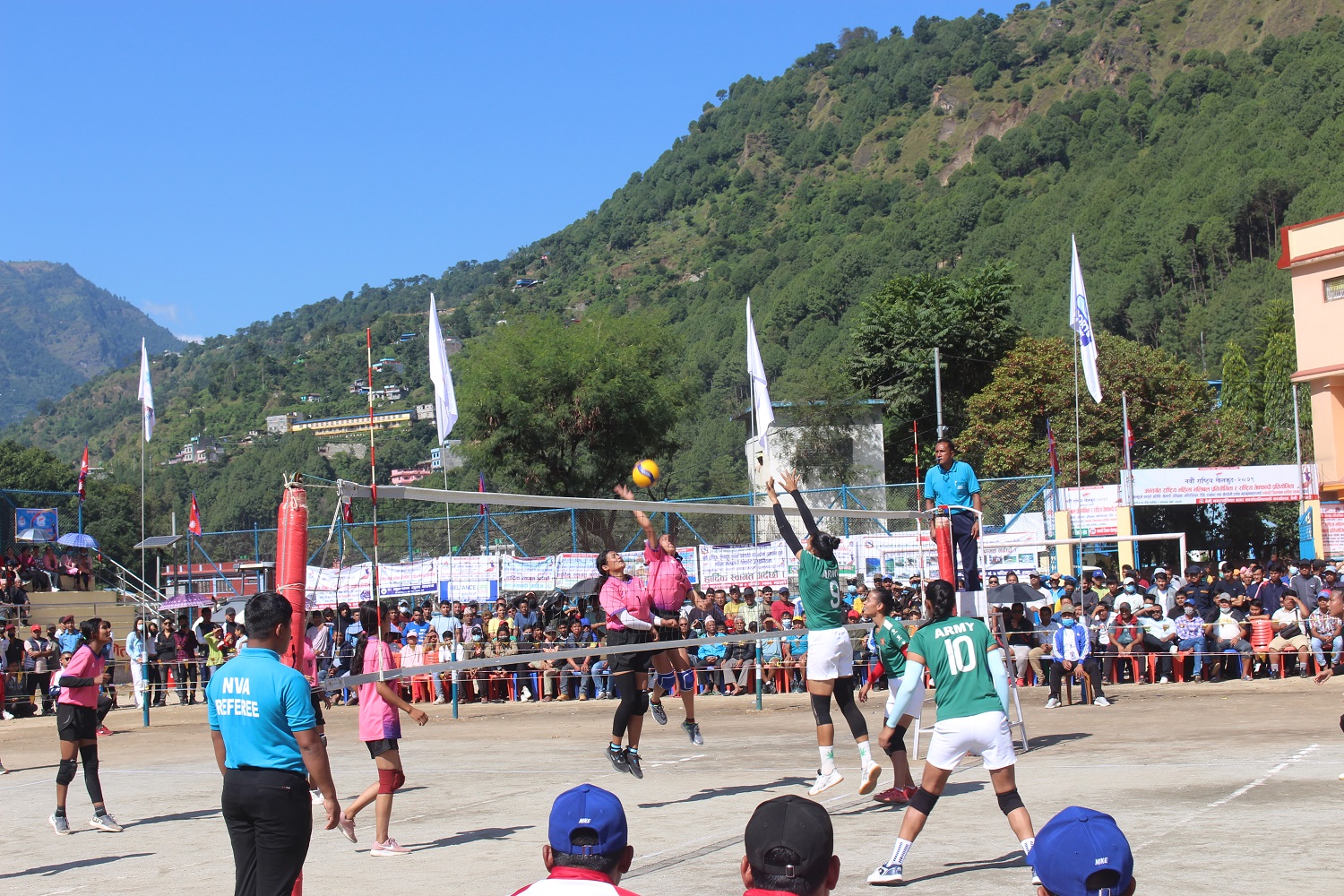 बेनीको खुल्ला मञ्च खेलमैदानमा भएको खेलमा सेनाले कर्णाली र प्रदेश १ ले मधेश प्रदेशलाई सोझो तीन सेटमा पराजित गरेका हुन् । मनिषा खाँडको कप्तानीमा मैदानमा उत्रिएको सेनाको टोलीले कर्णालीलाई पहिलो सेट २५–१२, दोस्रो सेट २५–१३ र तेस्रो सेट २५–१२ अन्तरमा पराजित गरेको हो । विनिता राइको नेतृत्वमा खेलेको प्रदेश १ ले मधेशलाई क्रमश ः २५–१३, २५–२२ र २५–१५ को अन्तरमा पराजित गरेको थियो ।