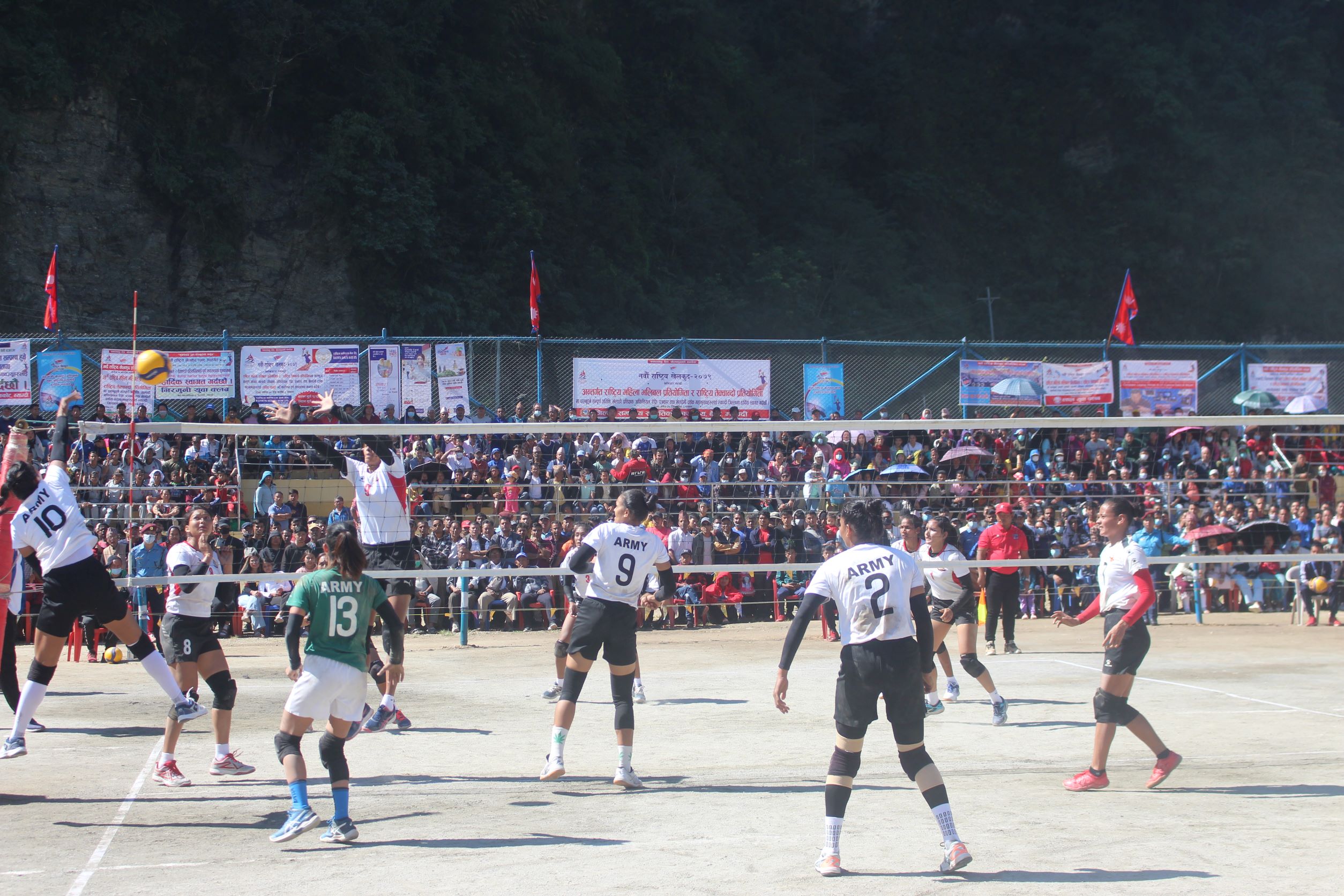 त्यसैगरि सशस्त्र प्रहरीको एपीएफ क्लबले नेपाली सेनासंग २५–२०, १९–२५, २५–२१ र २५–२३ को जित निकाल्यो । एउटै समूहमबाट एपीएफले बिजेता र त्रिभुवन आर्मी क्लबले उपबिजेता हुँदै क्वाटरफाइनलको यात्रा तय गरेका हुन् । आइतवार भएको खेलमा एपीएफकी निरुता थकुन्ना र बागमतीकी जेनिसा बिक उत्कृष्ट खेलाडी घोषित भएकी छन् ।