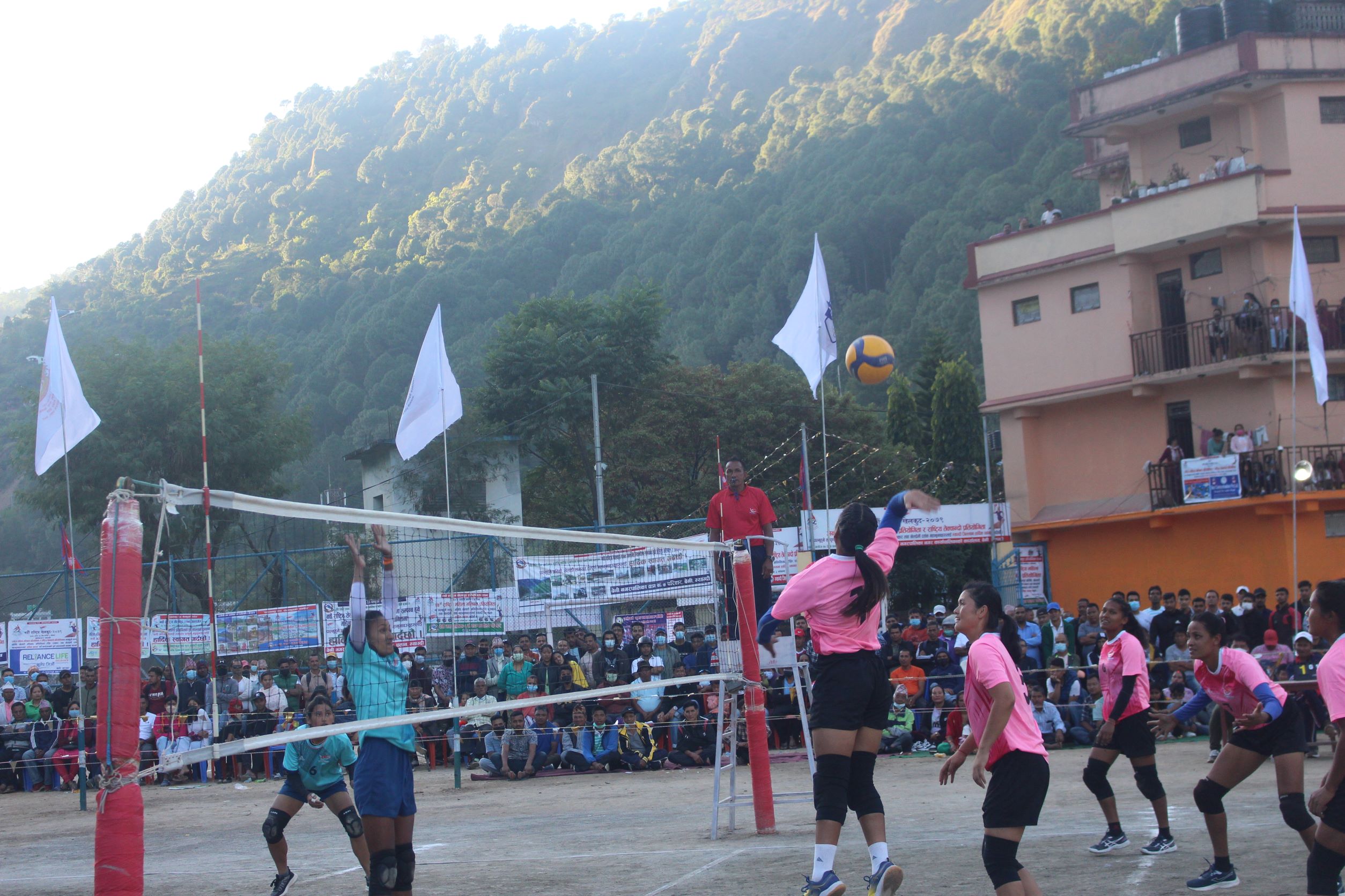 म्याग्दी, ३१ असोज । नवौं राष्ट्रिय खेलकुद अन्तरगत म्याग्दीको सदुरमुकाम बेनीमा भएको महिला भलिवल प्रतियोागितामा एपीएफ, पुलिस, बागमति प्रदेश र गण्डकी प्रदेश सेमिफाईनलमा प्रवेश गरेको छ ।