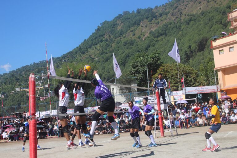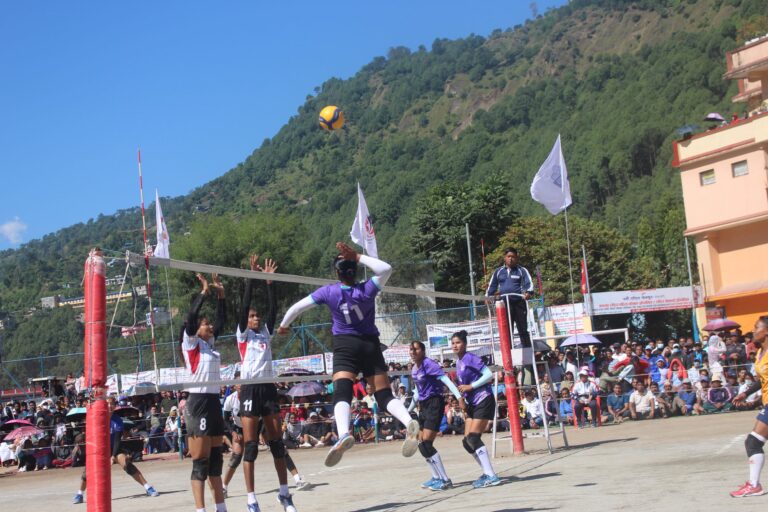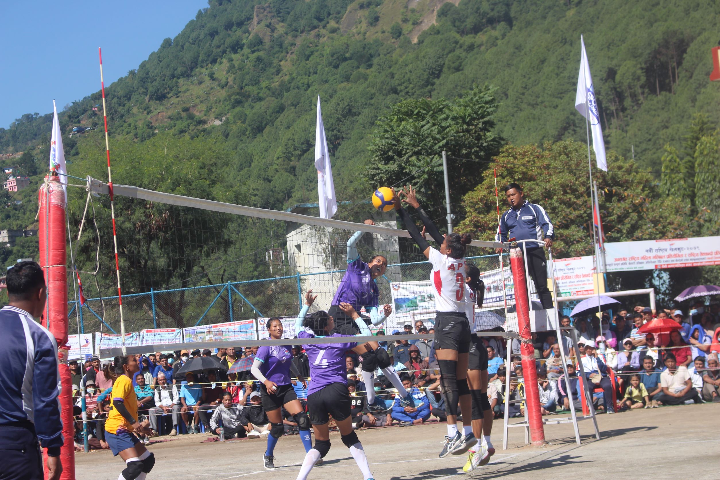 म्याग्दी, १ कात्तिक । नवौं राष्ट्रिय खेलकुद प्रतियोगिता अन्तरगत म्याग्दीको सदरमुकाम बेनीमा जारी महिला भलिवलमा एपीएफ फाईनलमा प्रवेश गरेको छ ।