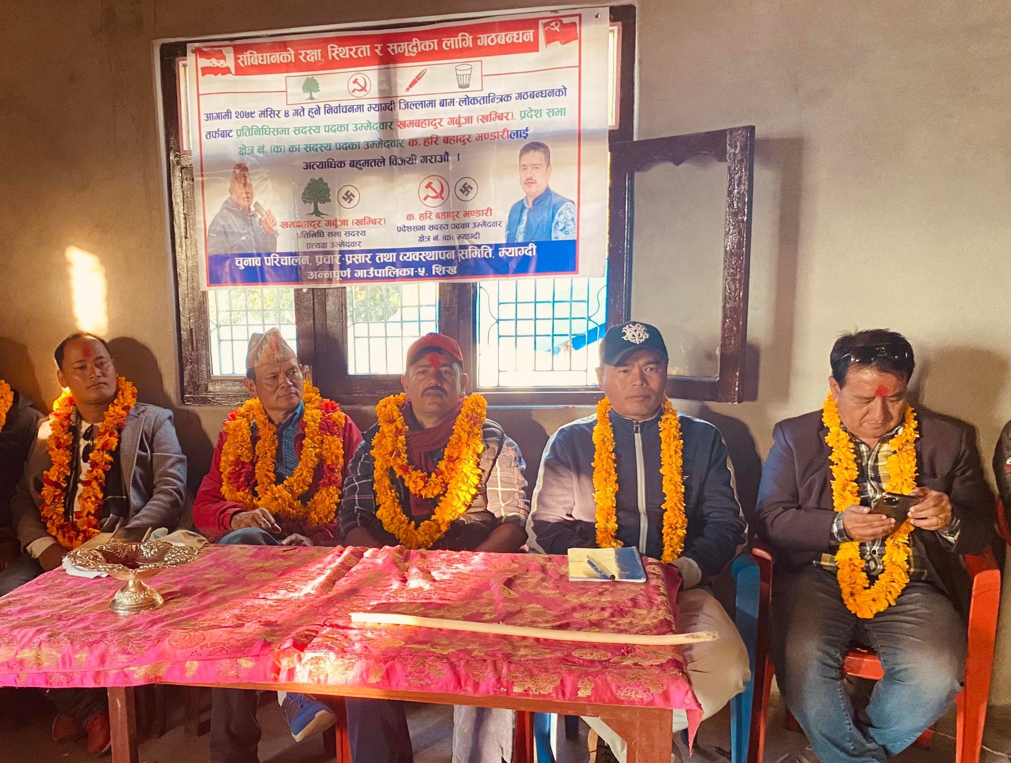 म्याग्दी २२ कात्तिक । चार मंसिरमा हुने प्रतिनिधिसभा तथा प्रदेशसभा निर्वाचनमा बाम लोकतान्त्रिक गठबन्धन गरेका दलहरुले म्याग्दीको अन्नपूर्ण गाउँपालिका–१ भुरुङ–तातोपानी, ३ दाना, ४ नारच्याङ र ५ वडा पाउद्धारमा मंगलवार चुनाबी सभा गरेका छन् । चुनाबी सभाहरुलाई सम्बोधन गर्दै उम्मेदवारहरुले अन्नपूर्ण गाउँपालिकामा पर्यटन, जलविद्युत र पूर्वाधार निर्माण मार्फत विकास र समृद्धिमा अघि बढाउने प्रतिबद्धता जनाएका छन् ।