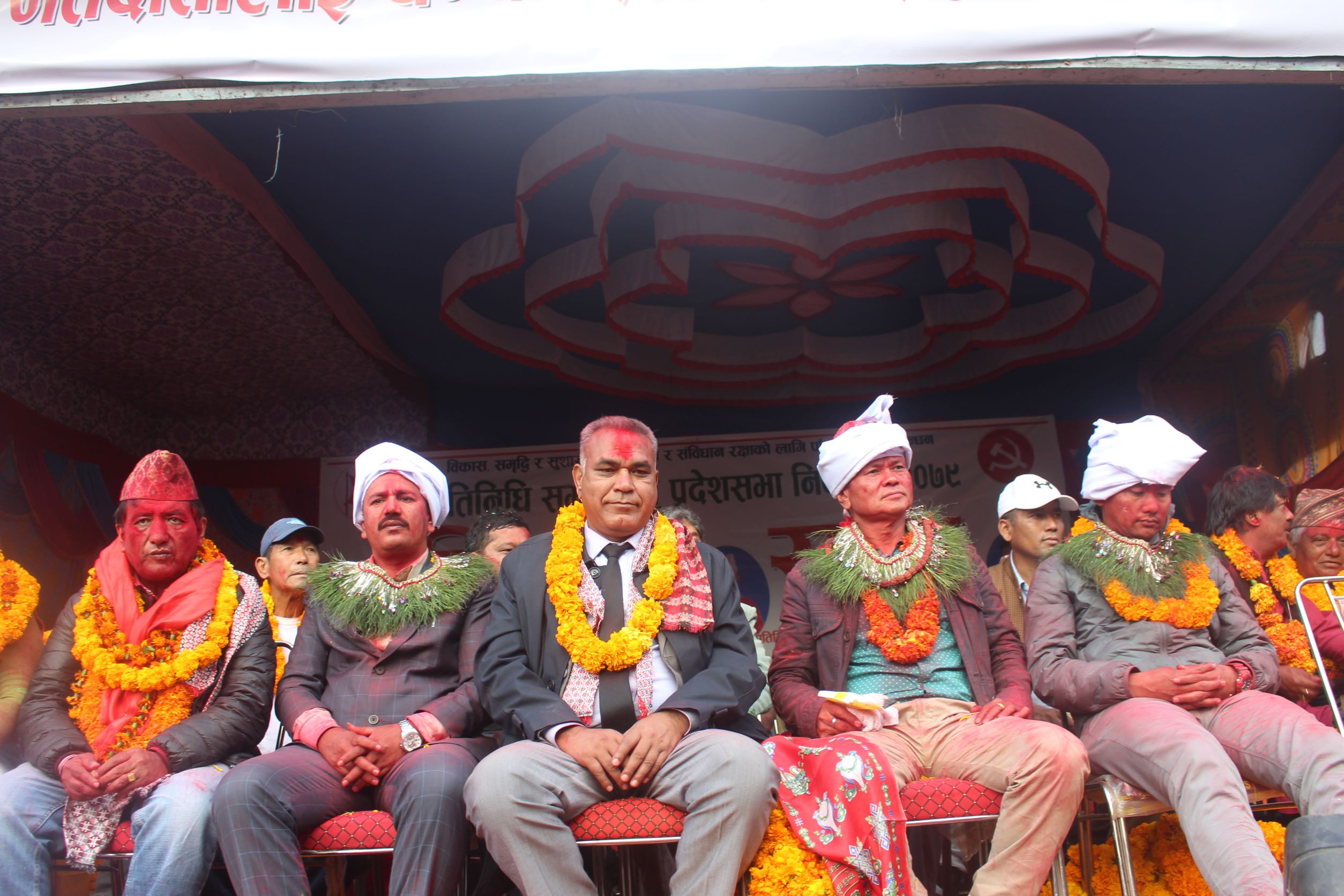 कार्यक्रममा प्रदेशसभा सदस्यमा निर्वाचित रेशम जुग्जाली र हरी भण्डारीले समेत म्याग्दीलाई अहिलेको अवस्थाबाट विकसित बनाउन र जिल्लामा अलपत्र परेका विकास निर्माण योजनाहरुलाई गति बढाउनका लागि निरन्तर क्रियाशिल हुने प्रतिबद्धता जनाए । कार्यक्रममा संविधानसभा सदस्यद्धय गोविन्द पौडेल, रेशम बानियाँ, नेकपा एकिकृत समाजवादीका जिल्ला अध्यक्ष कृष्णकुमार विश्वकर्मा, जनमोर्चाका अध्यक्ष छवि विक, नेपाली काँग्रेस म्याग्दीका उपसभापति केवी भण्डारी, नेकपा माओवादी केन्द्रका गण्डकी प्रदेश कमिटी सदस्य विनोद केसी लगायतले गठबन्धनका उम्मेदवारहरुलाई भारी मतका साथ बिजयी गराएकोमा मतदाताहरुलाई धन्यबाद ज्ञापन गरेका थिए । आमसभाको सञ्चालन काँग्रेस जिल्ला सचिब भरत रकालले गरेका थिए ।