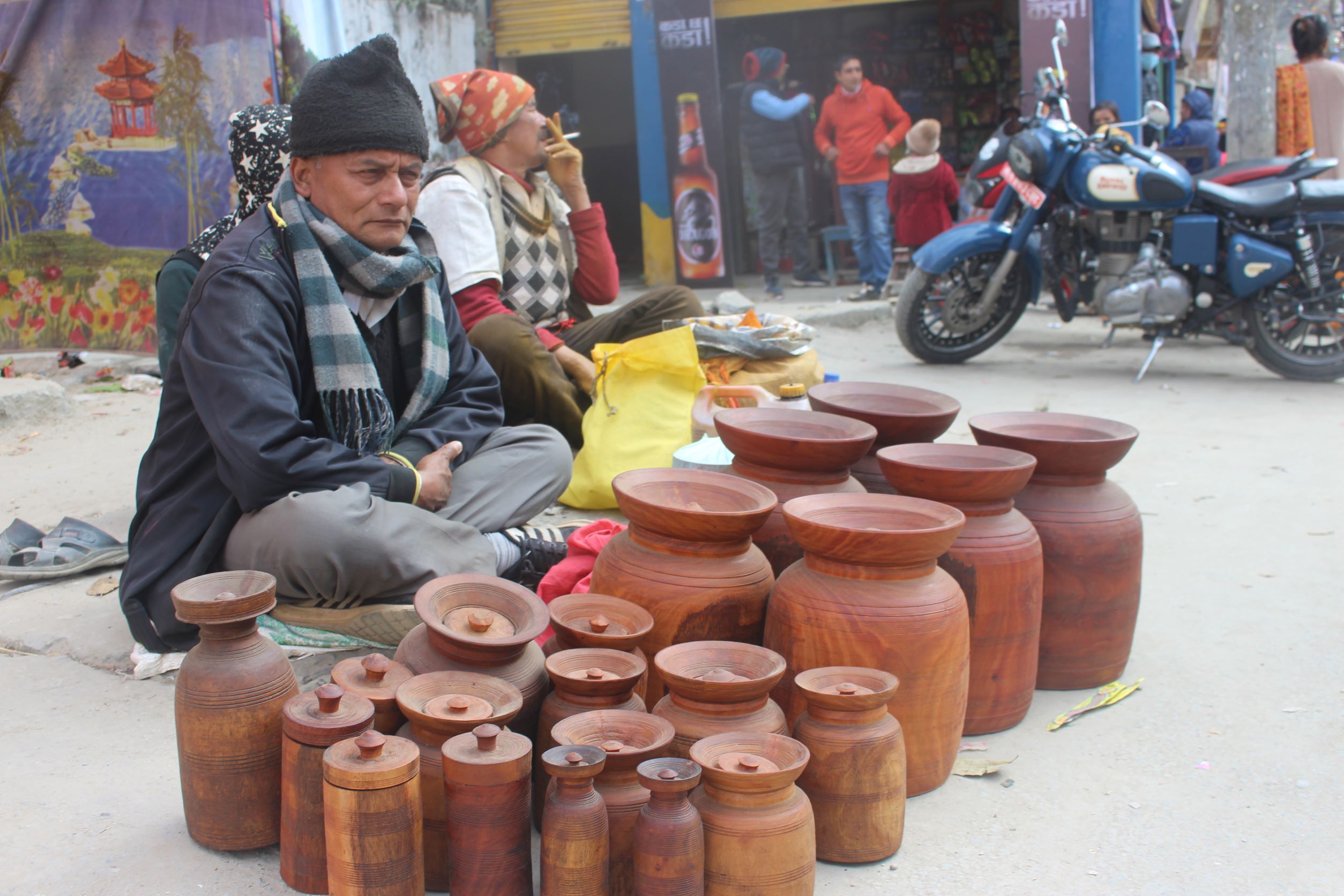 बेनी, ३ माघ । म्याग्दीको सदरमुकाम बेनी बजारमा आयोजित म्याग्दी महोत्सवमा ग्राहकको पखाईमा रहेका ठेका ब्यवसायी बागलुङ नगरपालिका–१२ अमलाचौरका टिका सुदारा । ५८ बर्षिय सुदाराले पछिल्लो समय फलाम र स्टिलको भाडाले ठेगा ब्यापार कम हुदै गएको बताउनुभयो । सुदाराले धार्ने ठेगा, दही राख्ने ठेका, चौथा लगायतका सामानहरु उत्पादन गरेर विक्रिका लागि म्याग्दी आएका हुन् । तस्विर : धिरन खत्री