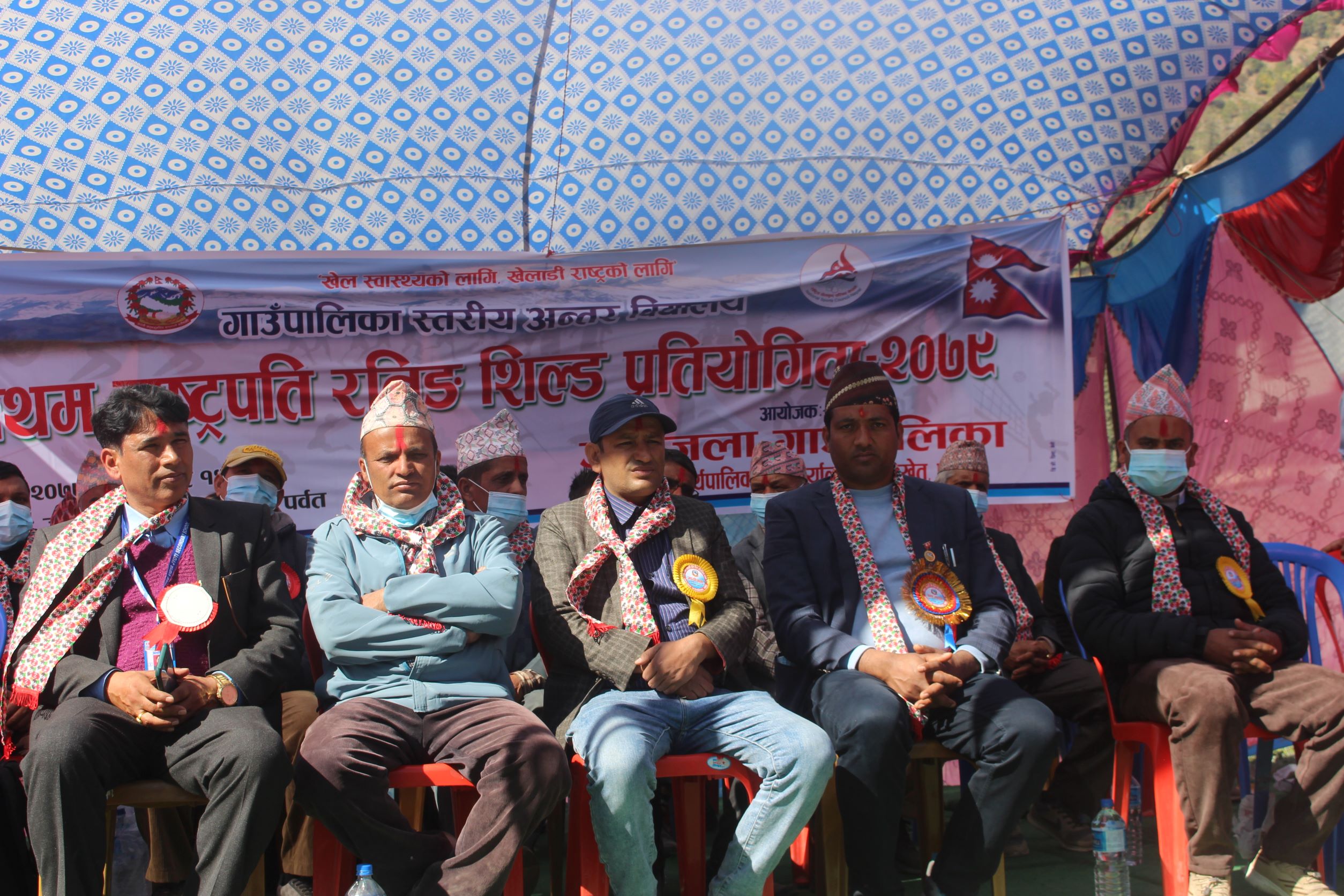 म्याग्दी, १३ माघ । जलजला गाउँपालिकाको आयोजनामा अन्तर मावि स्तरिय प्रथम राष्ट्रपति रनिङ शिल्ड खेलकुद प्रतियोगिता सुरु भएको छ । जलजलाको वडानम्वर ४ स्थित मोहनचोकमा शुक्रबार देखि संचालित विद्यालयस्तरको खेलकुद प्रतियोगिताको उदघाटन गर्दै गाउँपालिका अध्यक्ष राजुप्रसाद आचार्यले राष्ट्रपति रनिङशिल्ड प्रतियोगिताले विद्यार्थीलाई शैक्षिक विकाससँगै खेलकुद क्षेत्रमा पनि अब्बल बनाउन महत्त्वपूर्ण भूमिका खेल्ने बताउनुभयो ।