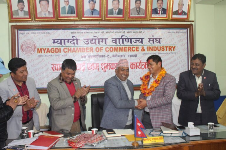 म्याग्दी, १५ माघ । गण्डकी प्रदेश सरकारका नवनियुक्त उद्योग, पर्यटन, वन तथा वातावरण मन्त्री रेशम बहादुर जुग्जालीलाई शनिबार म्याग्दीका विभिन्न संघ संस्थाले सम्मान र बधाई ज्ञापन गरेका छन् । म्याग्दी उद्योग वाणिज्य संघ, तातोपानी कुण्ड व्यवस्थापन समिति, मंगला र मालिका गाउँपालिका लगायतले मन्त्री जुग्जालीलाई सम्मान, स्वागत तथा बधाई ज्ञापन गरेका हुन् । म्याग्दी प्रदेशसभा क्षेत्र (ख)बाट निर्वाचित जुग्जाली सहित प्रदेश सभा क्षेत्र (क)बाट निर्वाचित हरिबहादुर भण्डारी र समानुपातितर्फबाट प्रदेशसभा सदस्यमा निर्वाचित बिमला गौचनलाई बेनीको म्याग्दी बहुमुखी क्याम्पसले सम्मान तथा बधाई ज्ञापन गरेको थियो ।