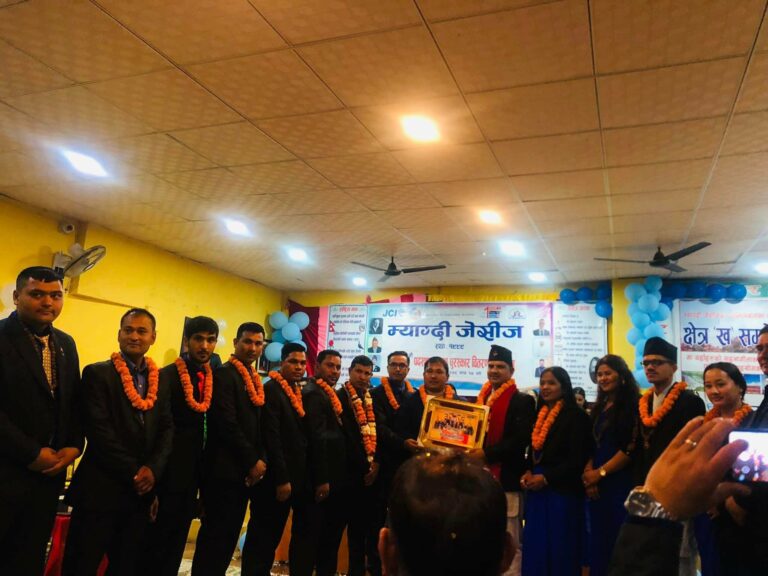 बेनी, १५ माघ । म्याग्दी जेसीजको २४औं पदस्थापन तथा पुरस्कार वितरण समारोह सम्पन्न भएको छ । नव निर्वाचित २०२३ को सुमन बानियाँ नेतृत्वको कार्य समितिले पदभार ग्रहण गरेका छन् । म्याग्दी जेसीज वर्ष २०२२ का अध्यक्ष जेसी सन्दिप खत्रीको अध्यक्षतामा भएको २४ औं बार्र्षिक पदस्थापना तथा पुरस्कार वितरण कार्यक्रममा गण्डकी प्रदेशसभा सदस्य हरिबहादुर भण्डारीले युवाहरुको क्षमता विकासका लागि जेसीजले निर्वाह गरेको भूमिका प्रशंसनीय रहेको बताउनुभयो । जेसीजले सञ्चालन गरेका गतिविधिहरुबाट समाजमा प्रत्यक्ष प्रभाव परेकाले राम्रा कामहरुमा हातेमालो गर्न समेत तयार रहेको बताउनु भयो ।