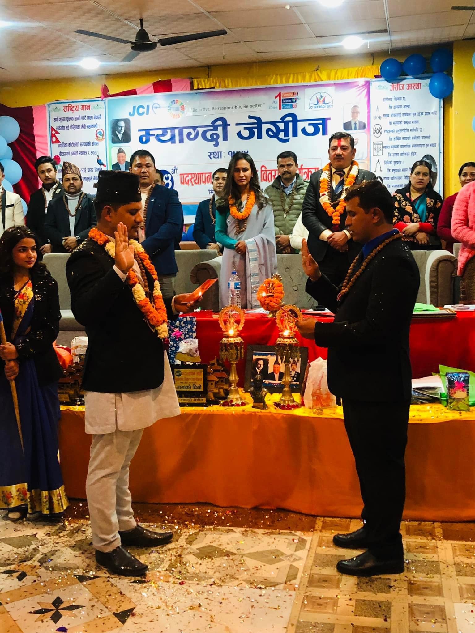 म्याग्दी जेसीज वर्ष २०२२ का महासचिव विष्मा श्रेष्ठ, निर्वाचन समिति सदस्य सचिव खम थापा मगर, २०२३ का महासचिव कुमार बानियाँले कार्यक्रमको सञ्चालन गर्नु भएको थियो भने २०२१ का शाखा अध्यक्ष वीरेन्द्र श्रेष्ठले स्वागत मन्तव्य राख्नु भएको थियो ।