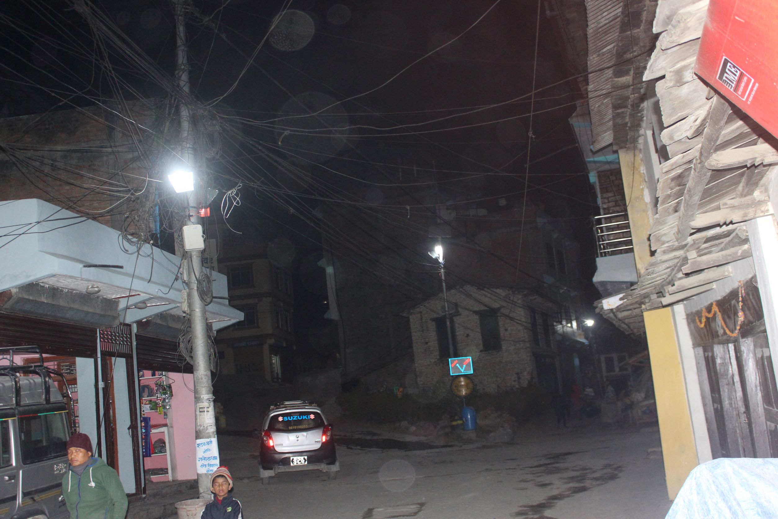 म्याग्दी, १ फागुन । बेनी नगरपालिका–९ स्थित गलेश्वर बजारमा सडक बत्ती जडान गरिएको छ। रातको समयमा बजारलाई उज्यालो राख्ने उद्देश्यले प्रसिद्ध धार्मिकस्थल गलेश्वरधाममा भक्तजनले चढाएको भेटीबाट गलेश्वरको प्रवेशद्वारदेखि राहुघाट नदीमा रहेको मोटरेबल पुलसम्मको बजारमा सडक बत्ती जडान गरिएको हो ।