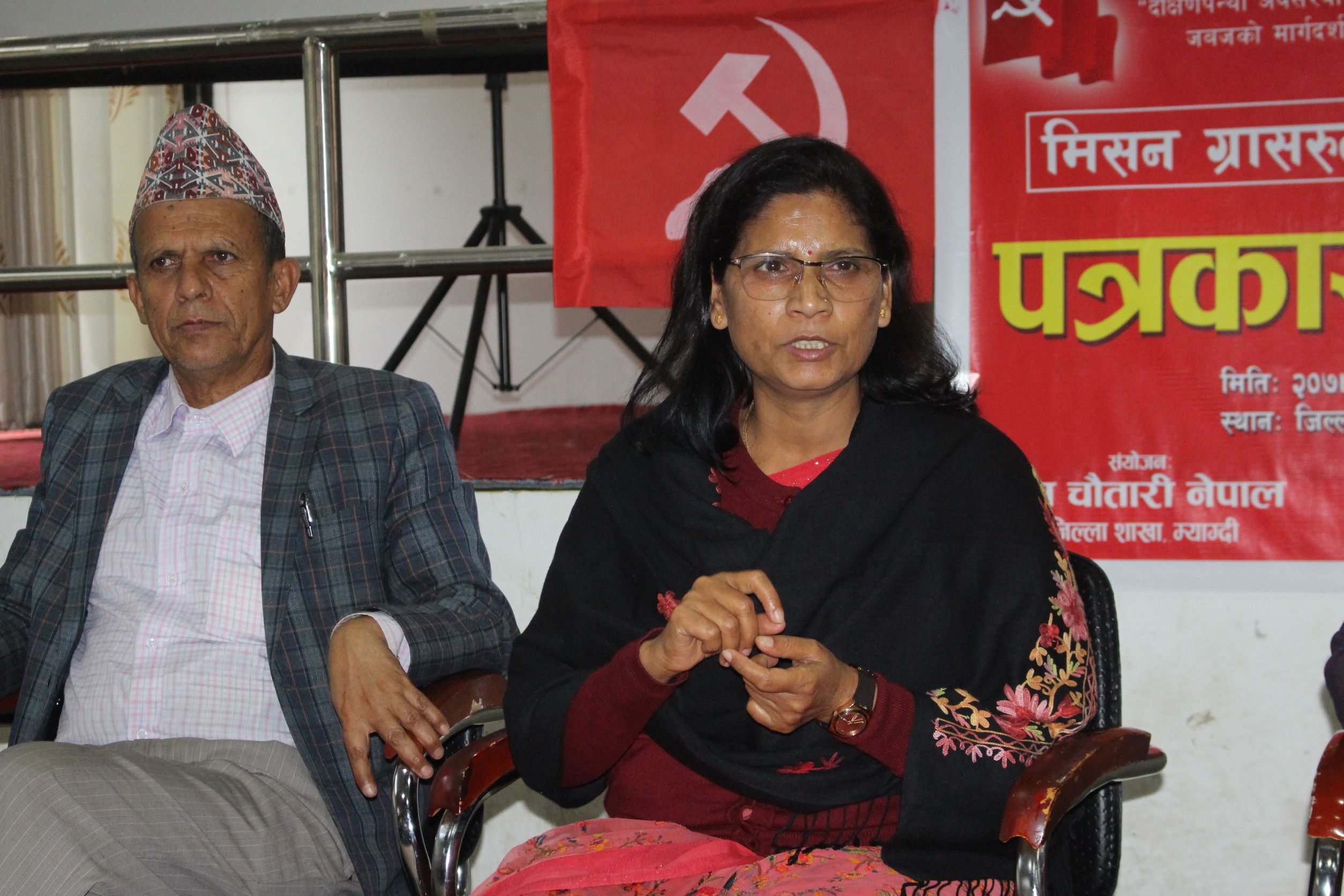 एमाले म्याग्दीका अध्यक्ष देवेन्द्रबहादुर कटुवालको अध्यक्षतामा भएको पत्रकार सम्मेलनमा पाटीको पोलिब्युरो सदस्य मोना केसी, केन्द्रिय सदस्य नरदेवी पुन, चन्द्रमोहन गौचन, प्रदेश सदस्य हरीकृष्ण श्रेष्ठ र जिल्लाका नेताहरुको सहभागिता रहेको थियो ।