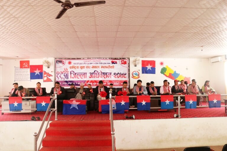 म्याग्दी, २६ फागुन । राष्ट्रिय युवा संघ नेपाल म्याग्दीको ११औं जिल्ला अधिवेशन सदरमुकाम बेनीमा सुरु भएको छ । ‘न्यायप्रेमी युवाहरु राष्ट्रिय युवा सघमा, सामाजिक परिवर्तन युवाको काँधमा’ भन्ने मूल नारासहित राष्ट्रिय युवा संघ म्याग्दीको ११औं अधिवेशन आयोजना गरिएको हो ।