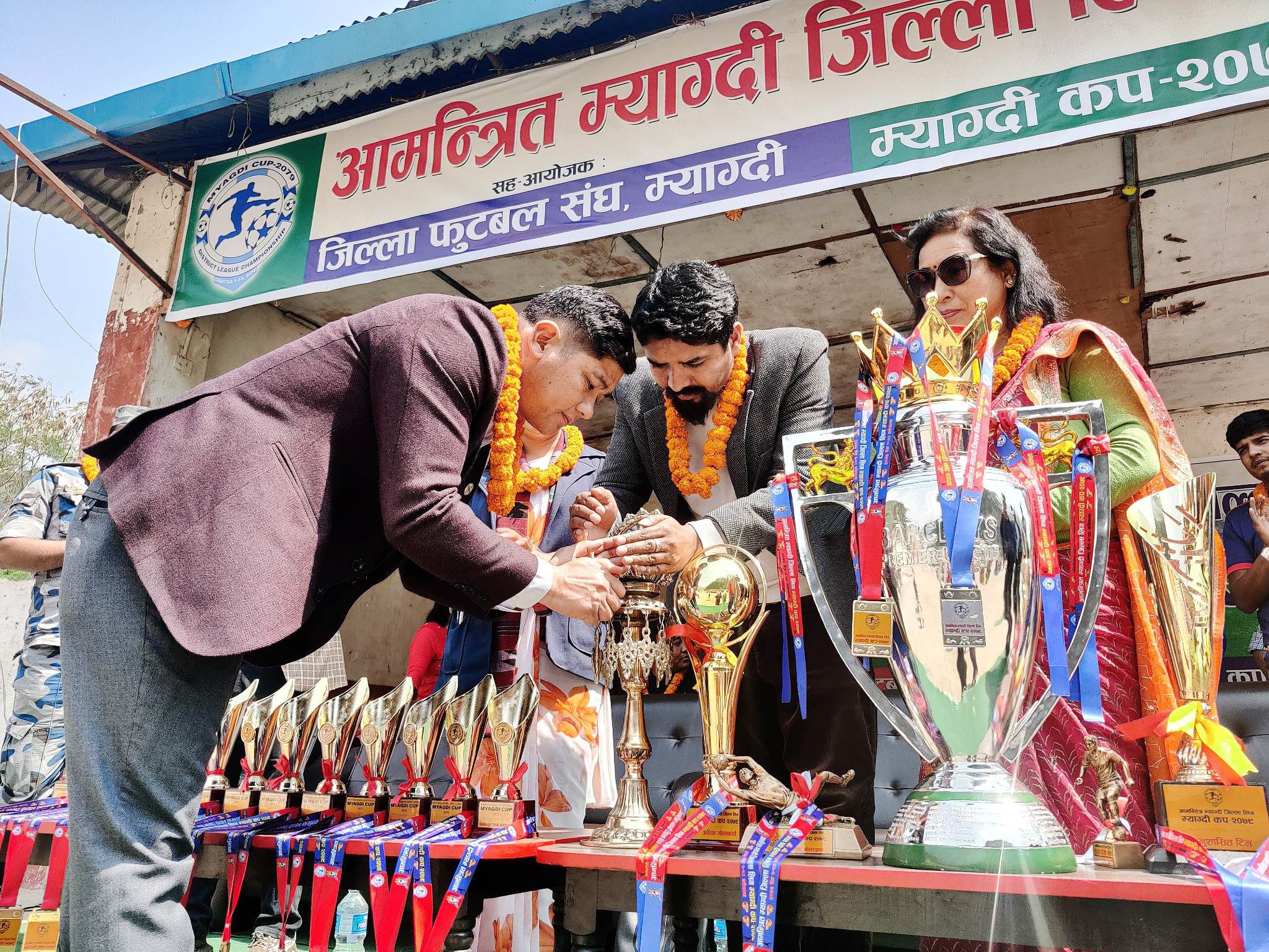 म्याग्दी, १ चैत्र । सदरमुकाम बेनीस्थित खुल्लामञ्चमा बुधबारदेखि ‘म्याग्दी कप’ लिग फुटबल प्रतियोगिता सुरु भएको छ । म्याग्दी कप २०७९ ब्यवस्थापन समितिको आयोजना र जिल्ला फुटवल संघको सह–आयोजनामा चैत १ गतेदेखि १० गतेसम्म संचालन हुने लिग फुटवल प्रतियोगिताको गण्डकी प्रदेशका उद्योग, पर्यटन, वन तथा वातावरण मन्त्री रेशम जुग्जालीले उद्घाटन गर्नुभयो।