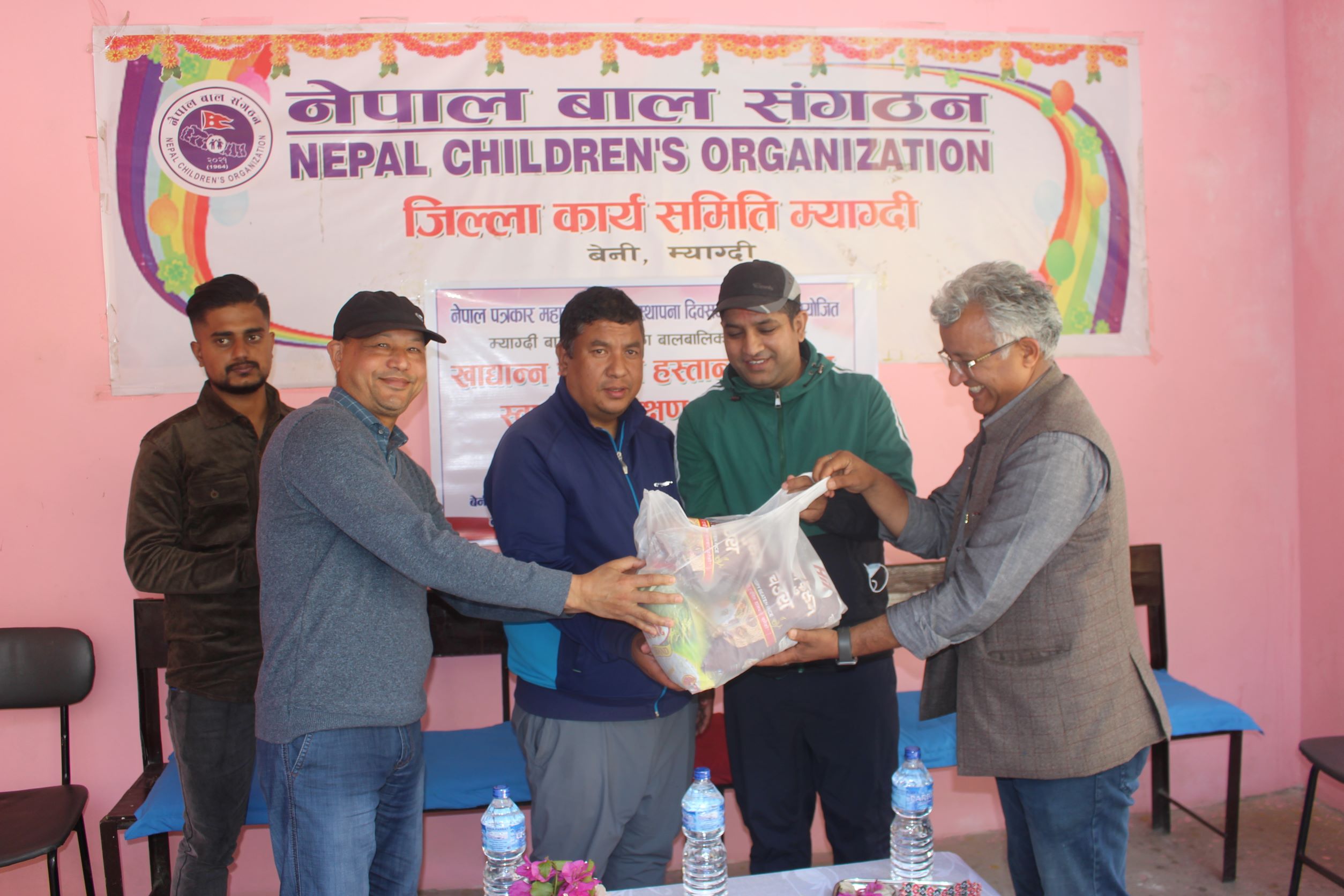 कार्यक्रममा बेनी नगरपालिकाका मेयर सुरत केसी र महासंघका उपाध्यक्ष हरीकृष्ण गौतमद्वारा नेपाल बालसंगठन जिल्ला कार्यसमिति म्याग्दीका अध्यक्ष राजेश शाक्य र उपसभापति ज्ञानेन्द्र श्रेष्ठलाई महासंघले बालगृहका बालबालिकाको लागि खाद्यान्न सामाग्री सहयोग गरेको हो ।