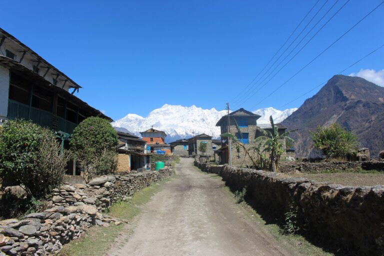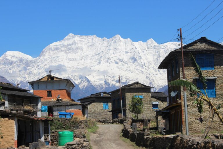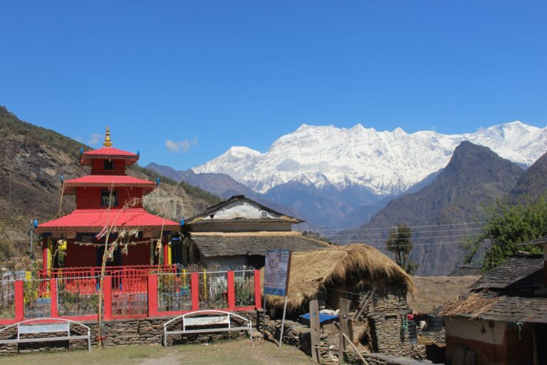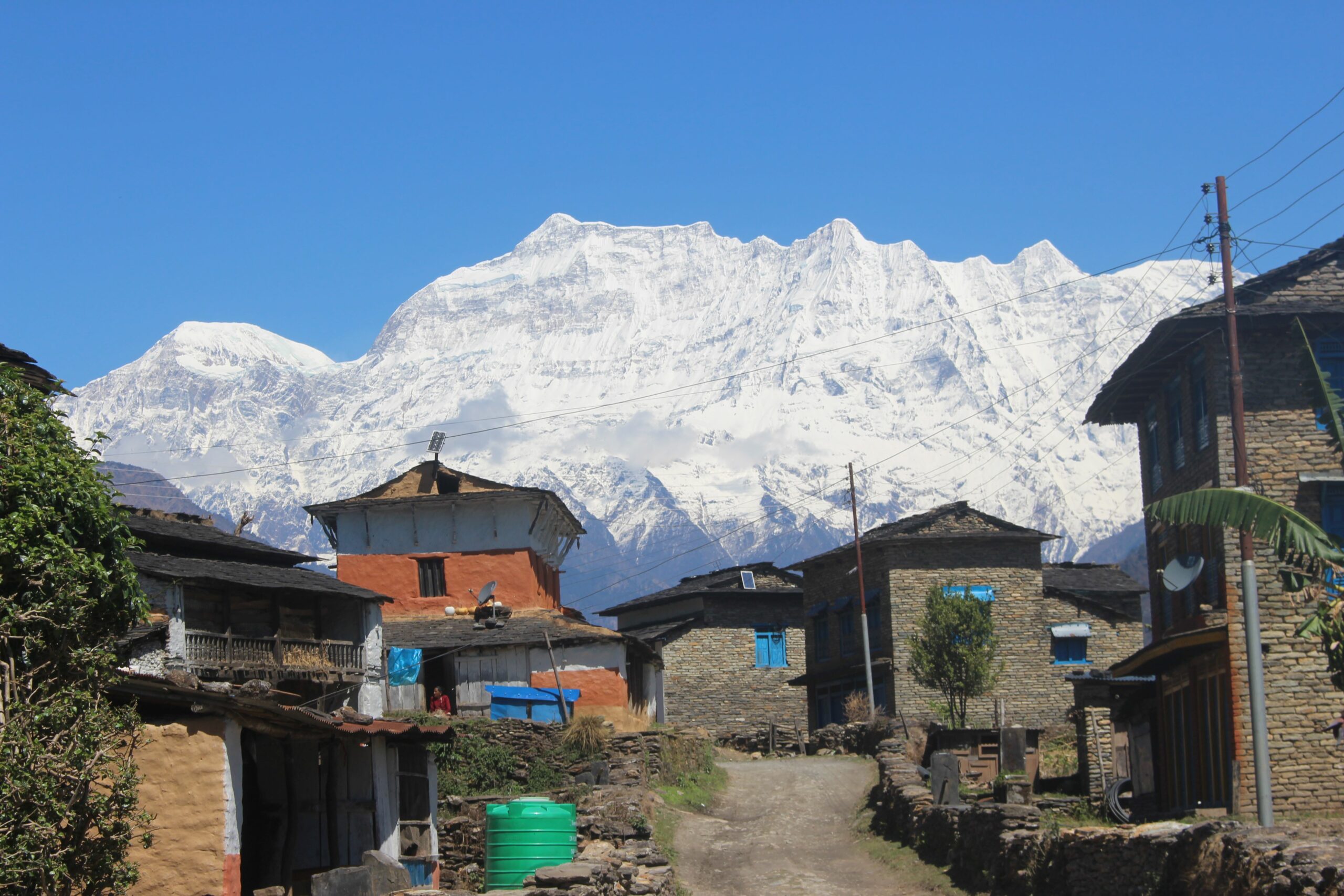 म्याग्दी, २४ चैत । धवलागिरी गाउँपालिका–७ धारापानीबाट देखिएको गुर्जा र चुरेन हिमालको मनोरम दृष्य । धौलागिरी पदमार्ग अन्तरगत पर्यटकिय गाउँको रुपमा धारापानी विकसित हुँदै गएको छ । सडक वारीपारी परम्परागत मौलिक ढुङ्गे घरसंगै पृष्ठभूमिमा देखिएको हिमालले घुम्न आउने आन्तरिक तथा बाह्य पर्यटकलाई आकर्षित गरेको छ। तस्विर : धीरन खत्री